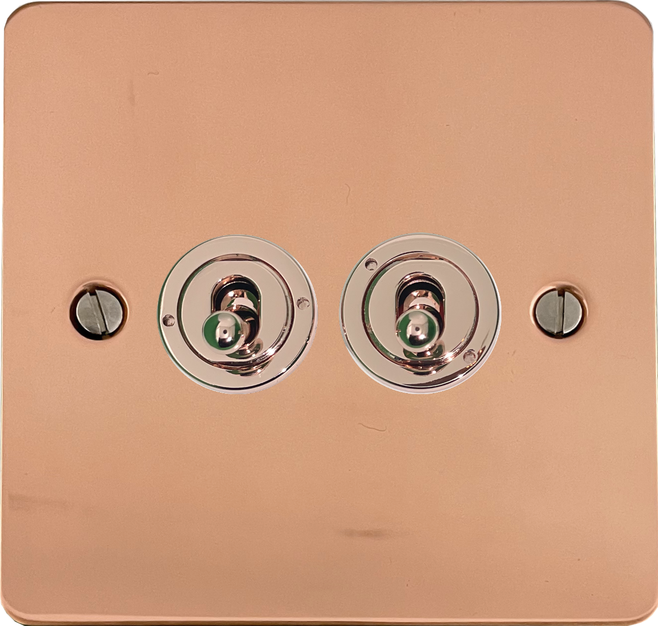 Flat Copper Toggle Switch (2 Gang/Bright Copper Toggle) - G+H FBC382-BC
