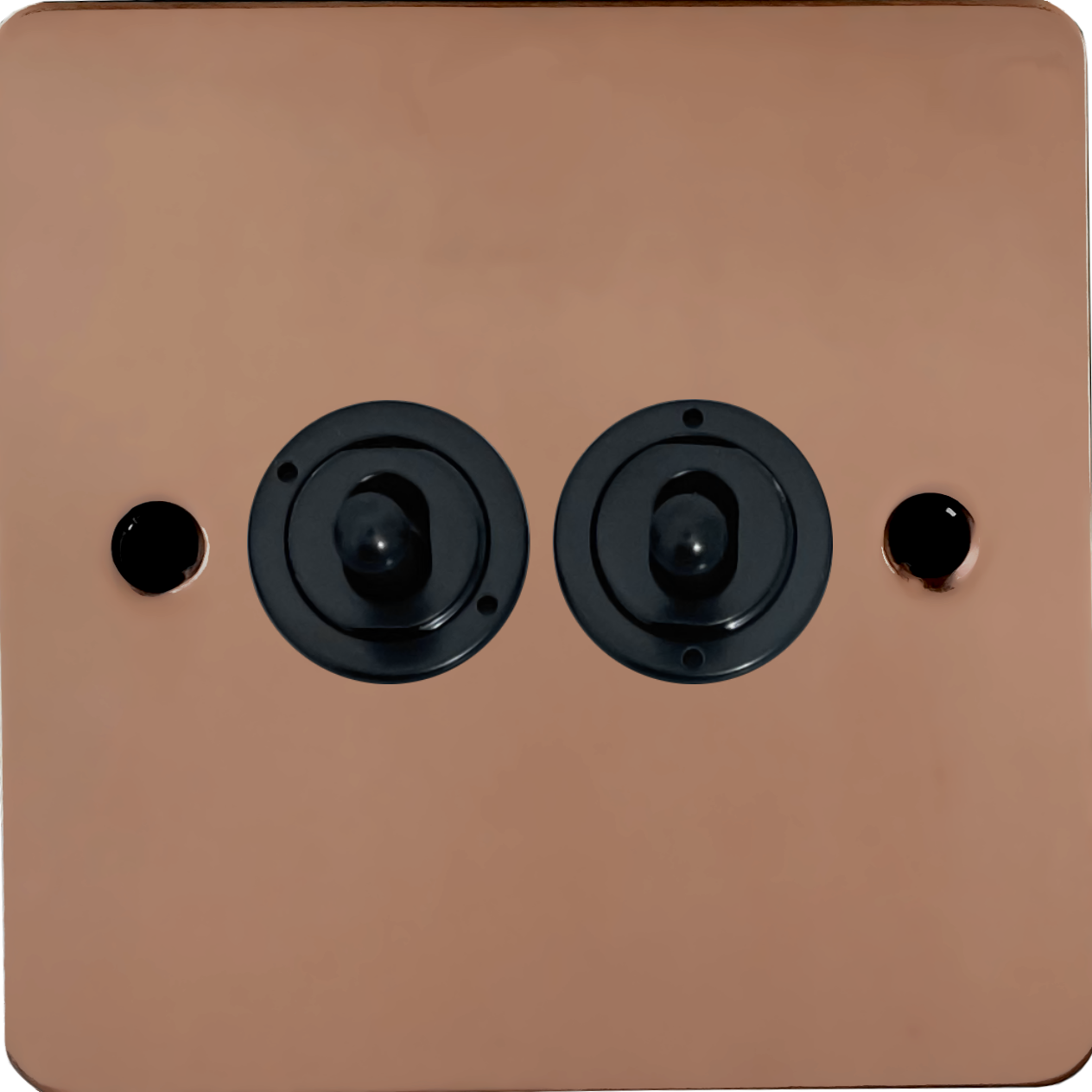 Flat Copper Toggle Switch (2 Gang/Matt Black Toggles) - G+H FBC382-FBK