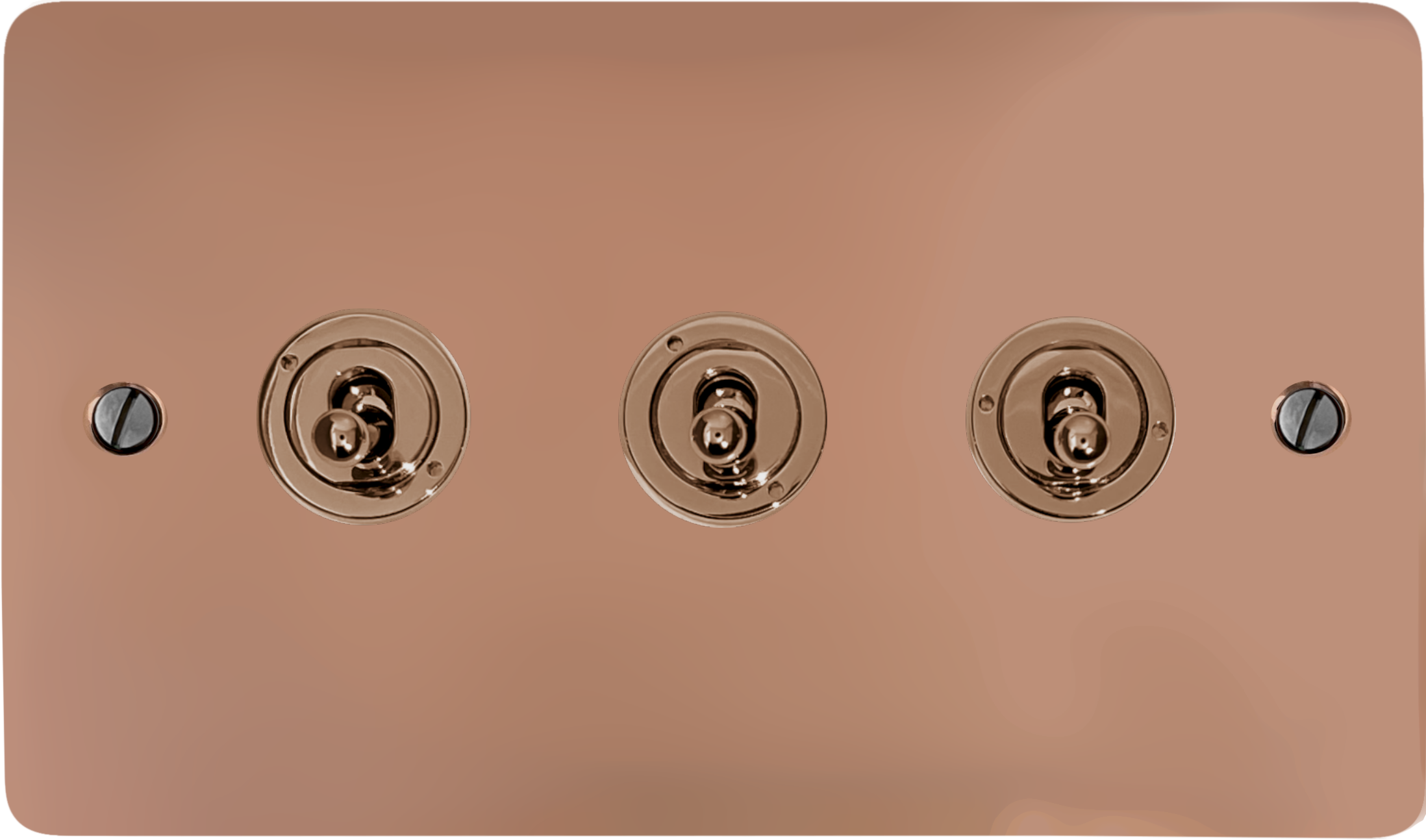 Flat Copper Toggle Switch (3 Gang/Bright Copper Toggle) - G+H FBC383-BC