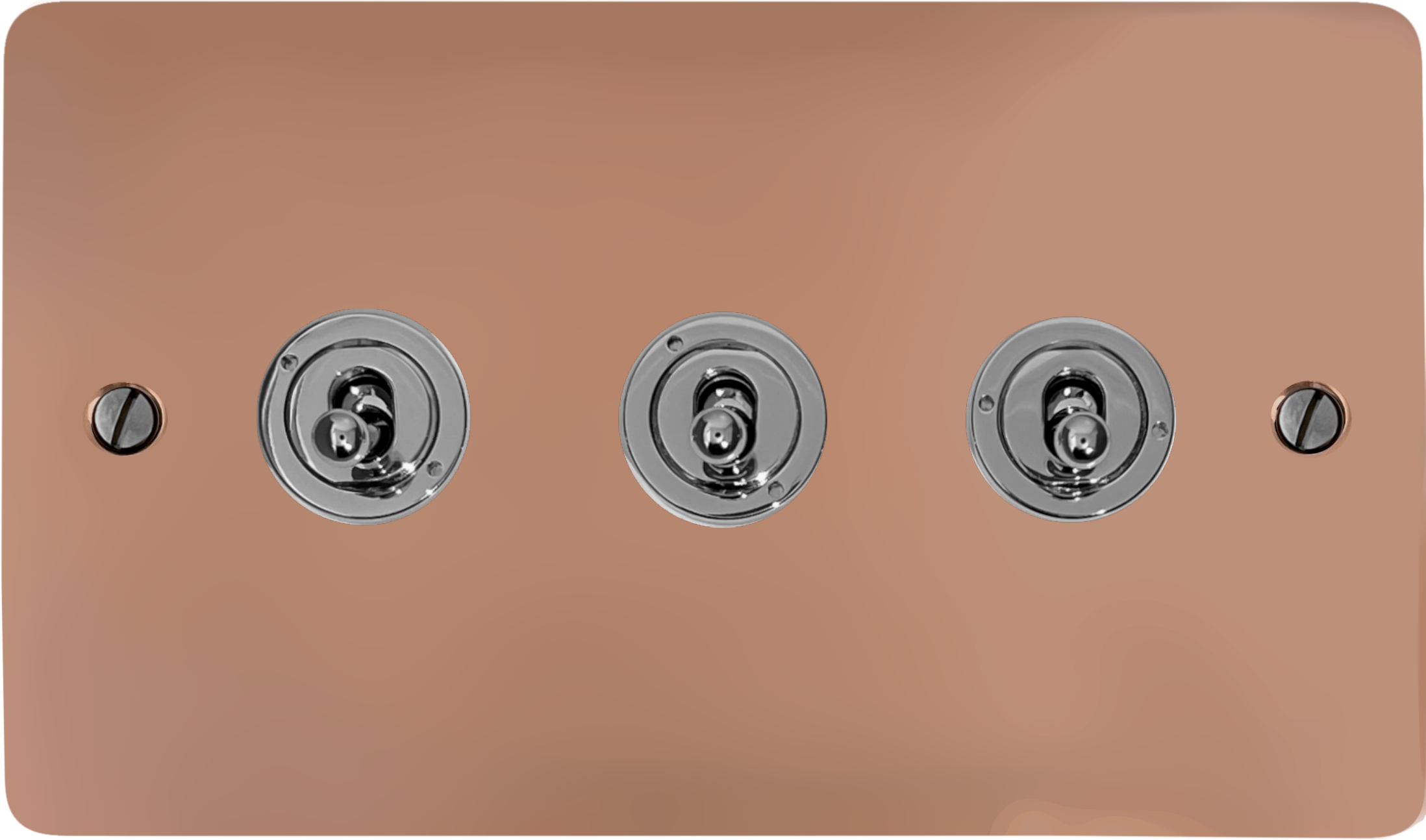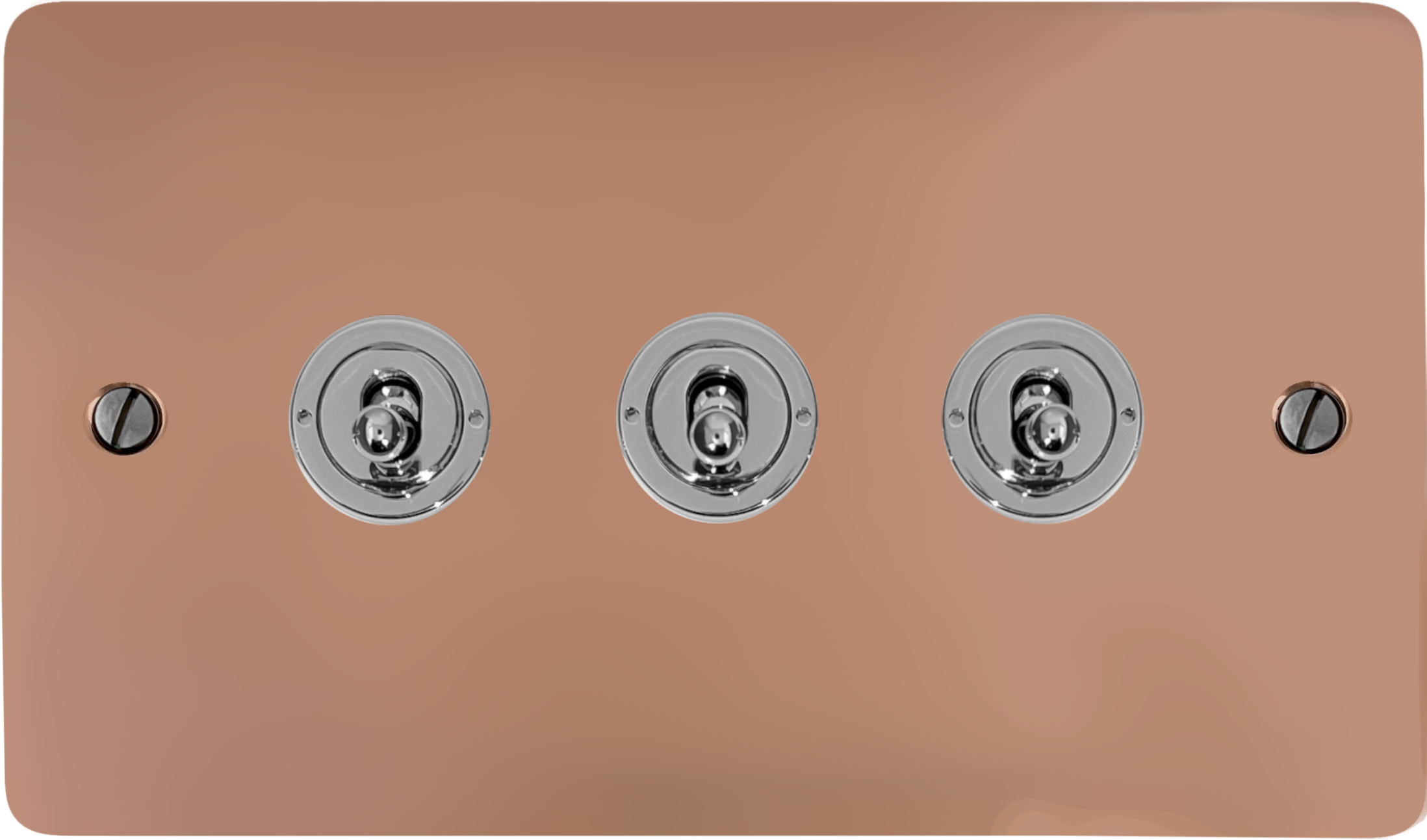 Flat Copper Toggle Switch (3 Gang/Polished Chrome Toggle) - G+H FBC383-PC