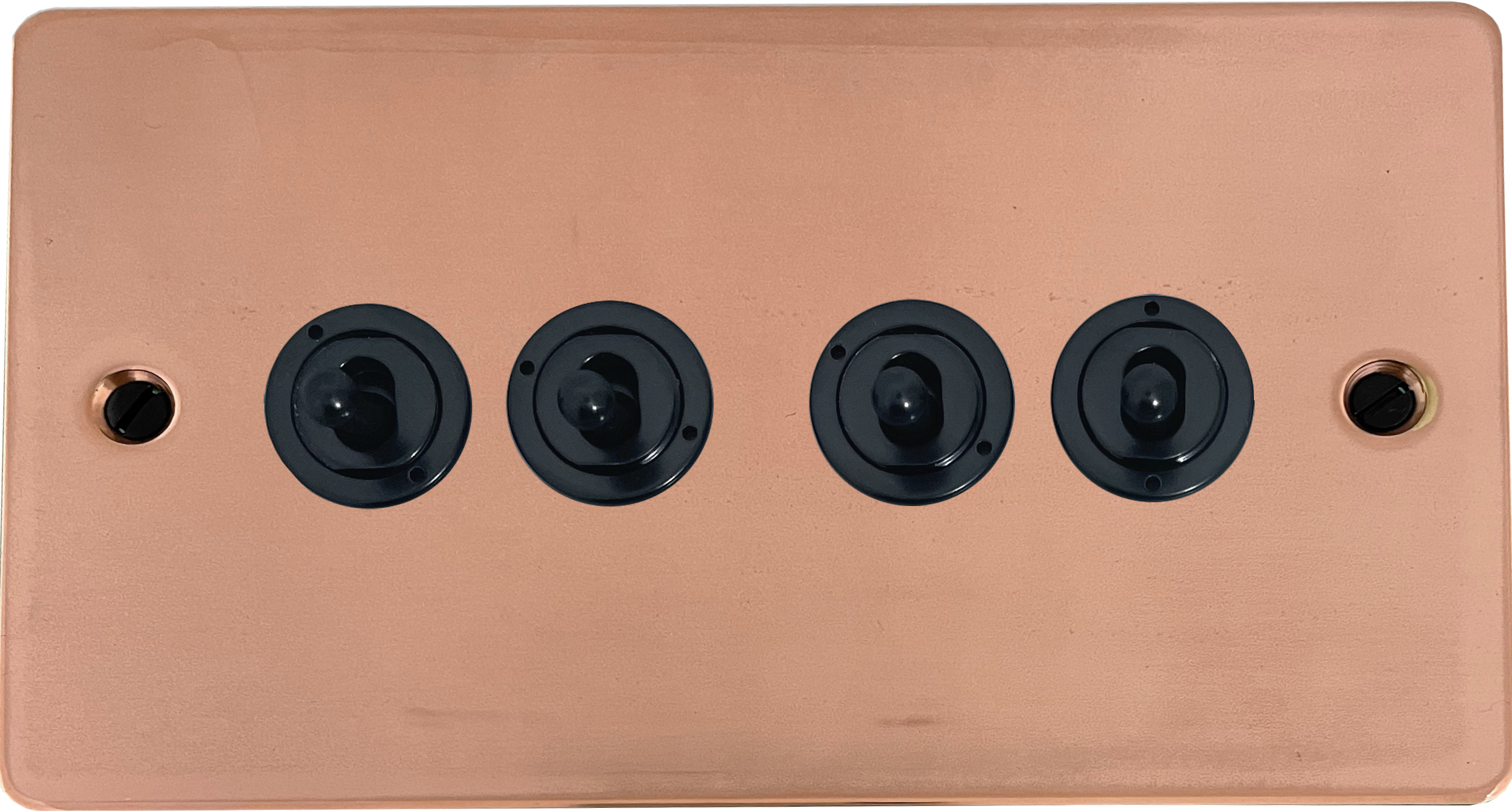 Flat Copper Toggle Switch (4 Gang/Flat Black Toggle) - G+H FBC384-FBK