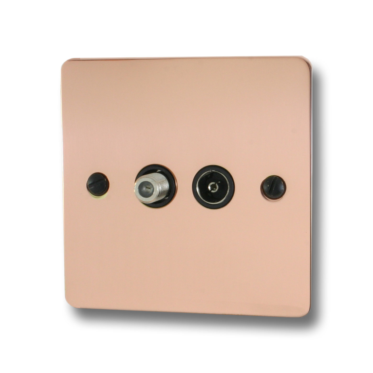 Flat Copper TV/Satellite Socket (Black Insert) - G+H FBC38B