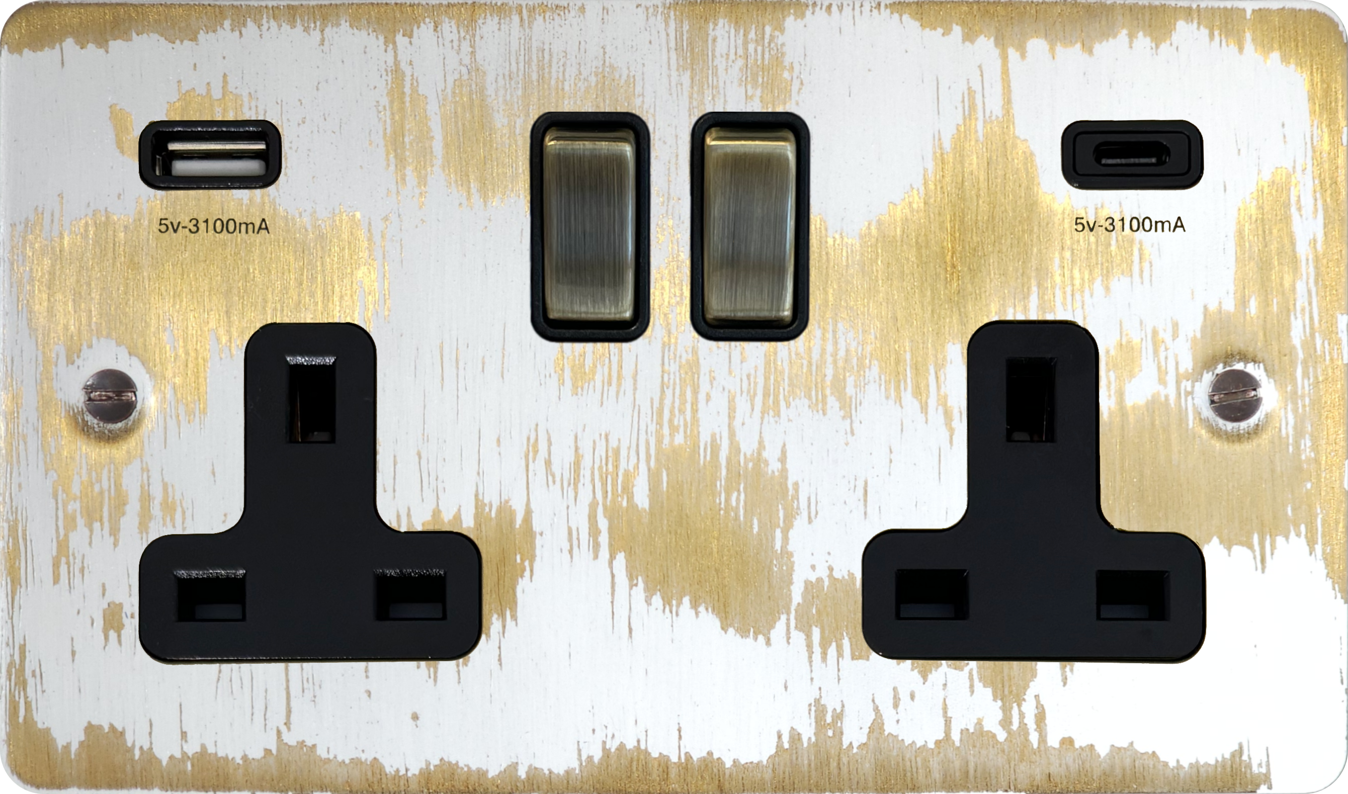 Flat Dover Bronze Double Socket with USB (USB-A and USB-C/Antique Brass Switches) - G+H FDB3911