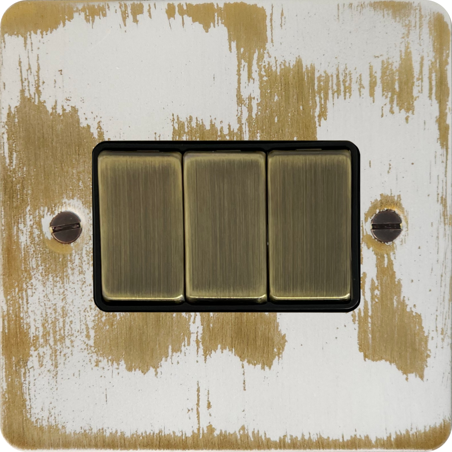 Flat Dover Bronze Light Switch (3 Gang/Antique Brass Switch/Black Insert) - G+H FDB303