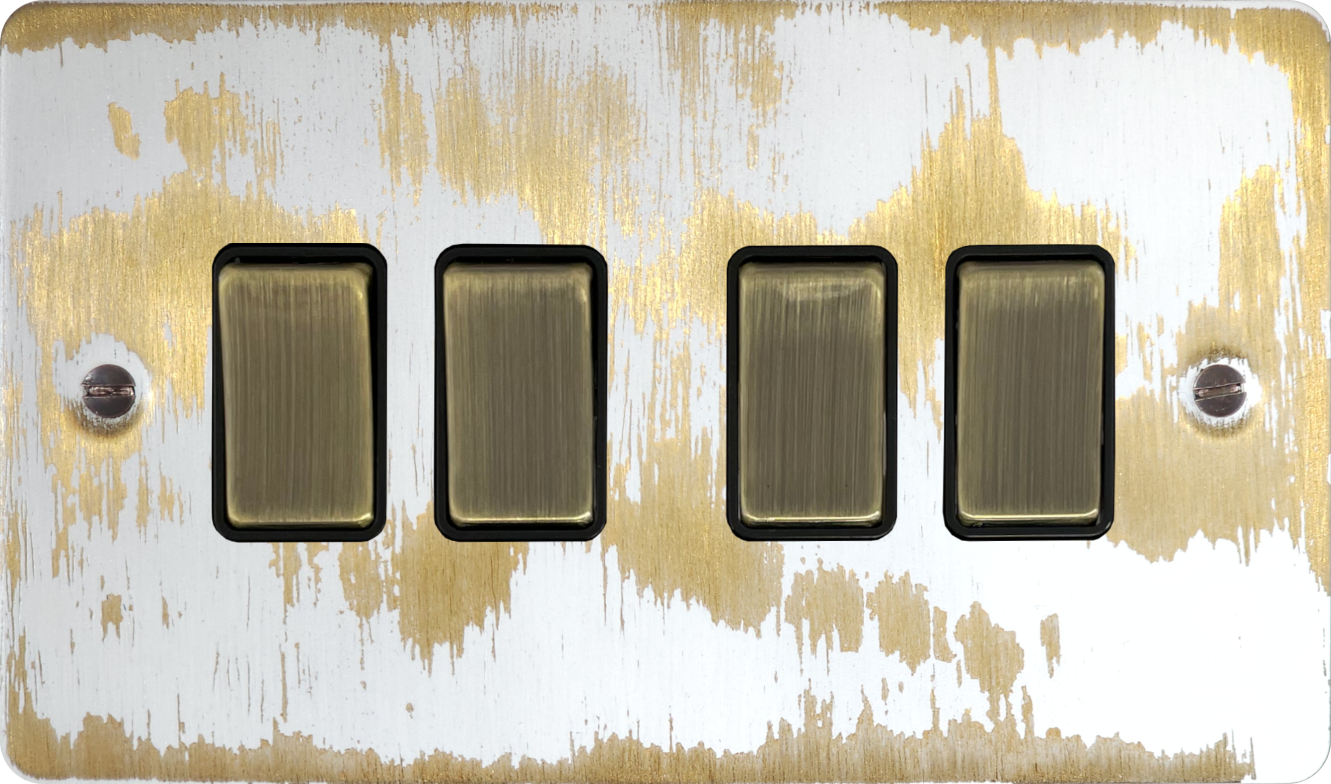 Flat Dover Bronze Light Switch (4 Gang/Antique Brass Switch/Black Insert) - G+H FDB304