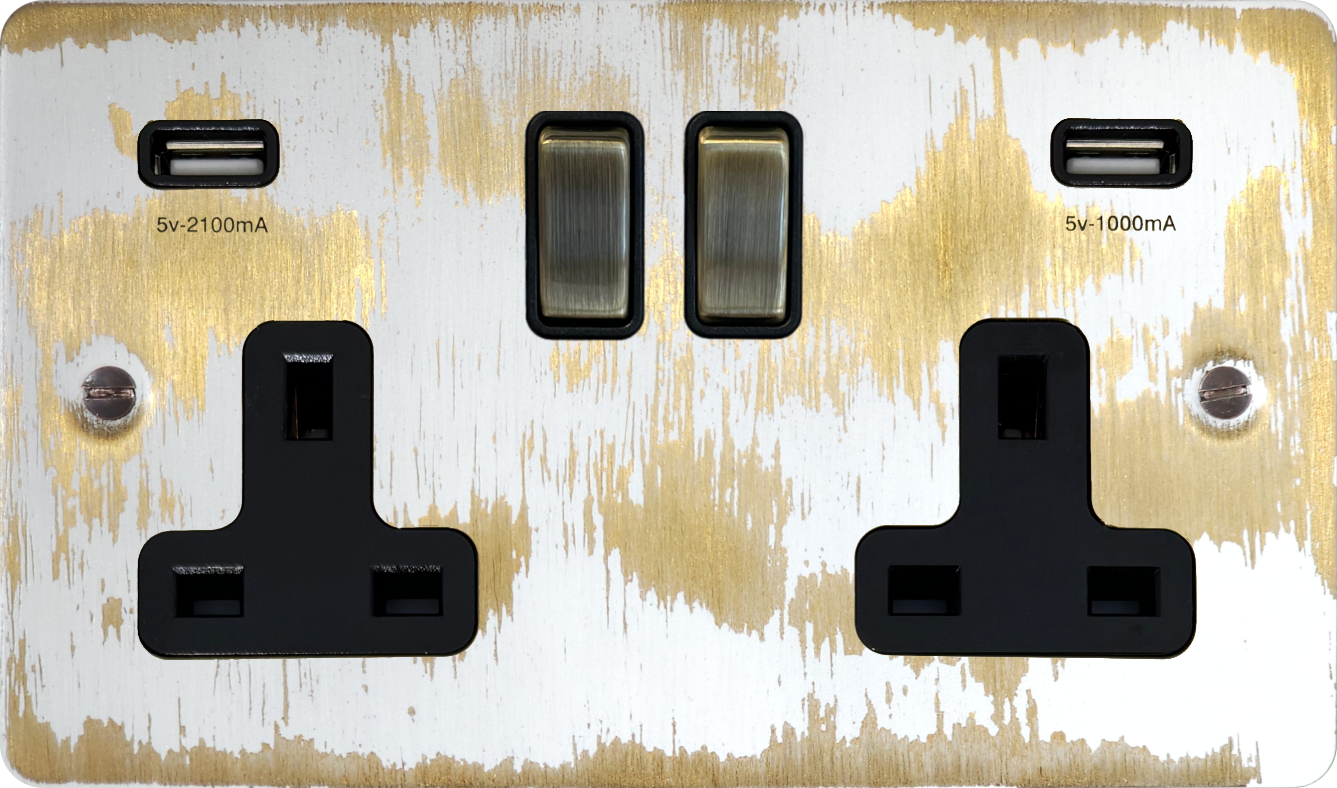 Flat Dover Bronze Socket with USB (Double Socket/Antique Brass Switches/Black Insert) - G+H FDB3910