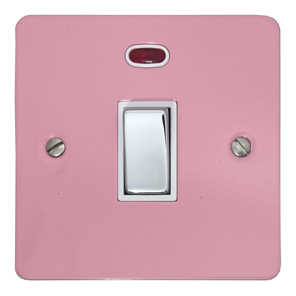 Flat Gloss Pink 20A DP Switch with Neon (White Insert/Polished Chrome Switch)
