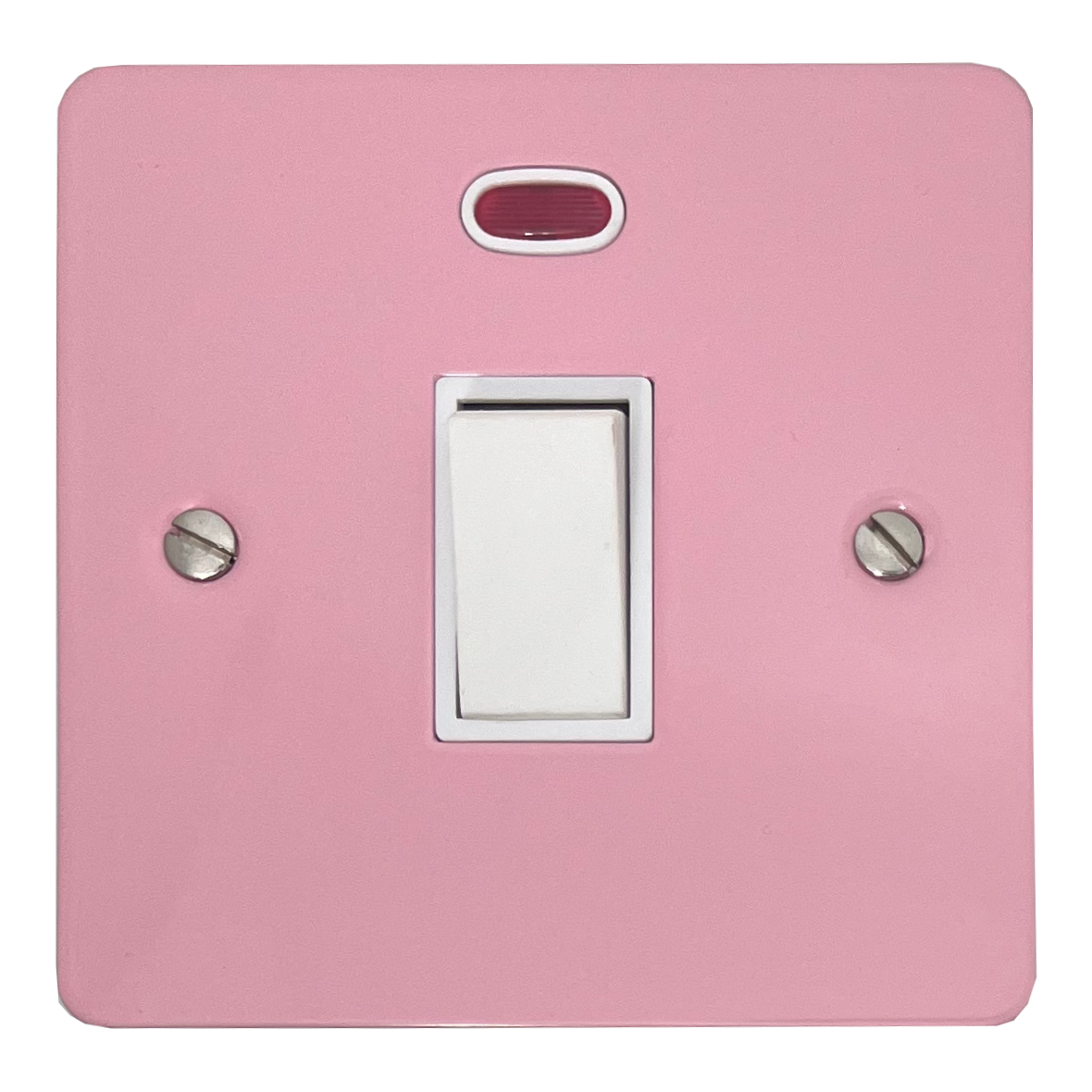 Flat Gloss Pink 20A DP Switch with Neon (White Switch) - G+H FGP26W