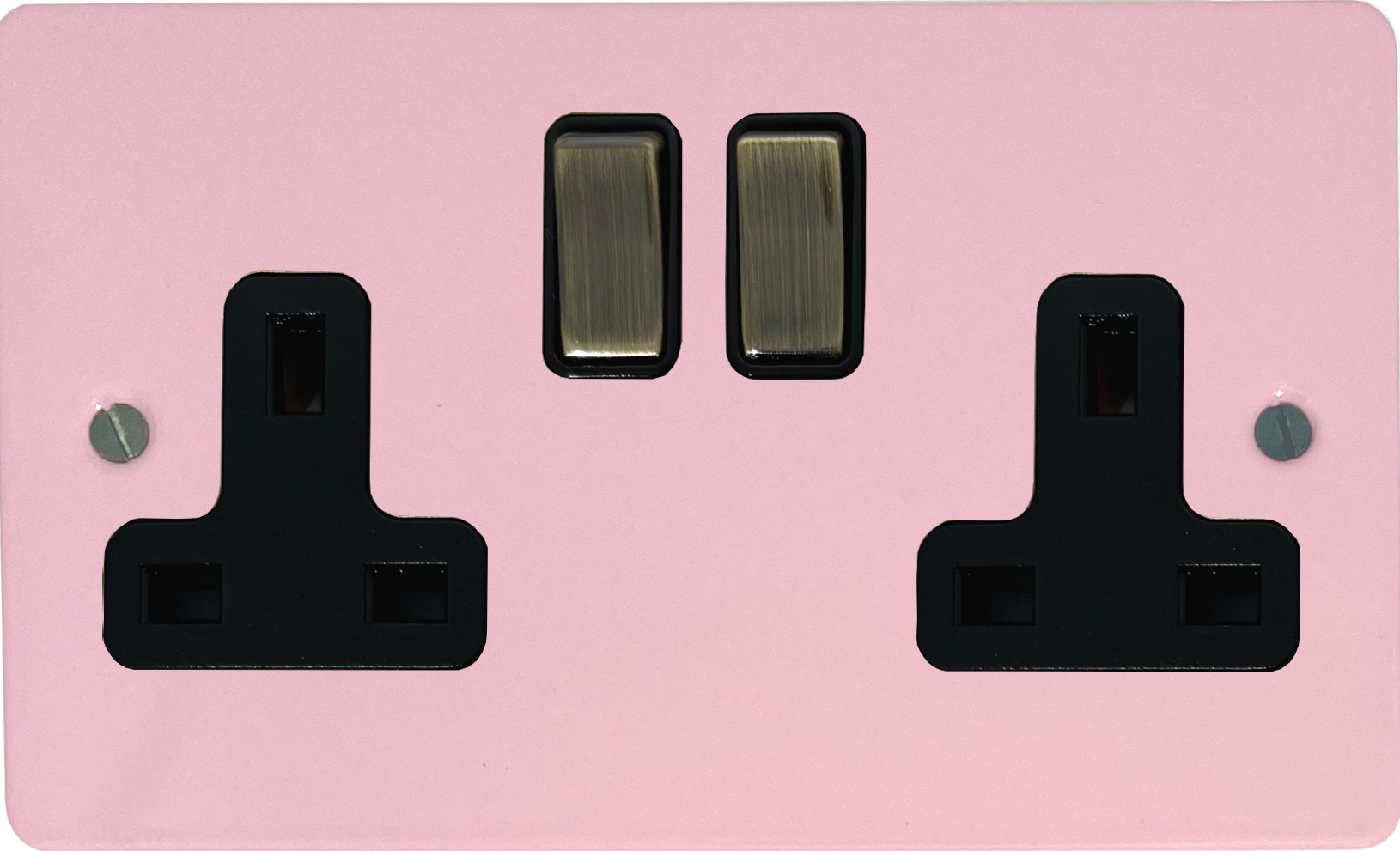 Flat Gloss Pink Double Socket (Black Insert/Antique Brass Switches)