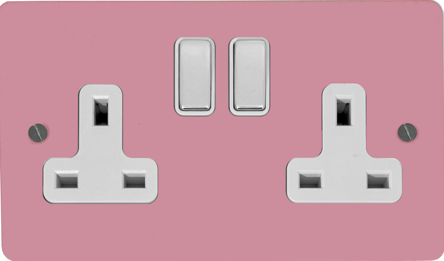 Flat Gloss Pink Double Socket (White Insert/Polished Chrome Switches) - G+H FGP210-PC