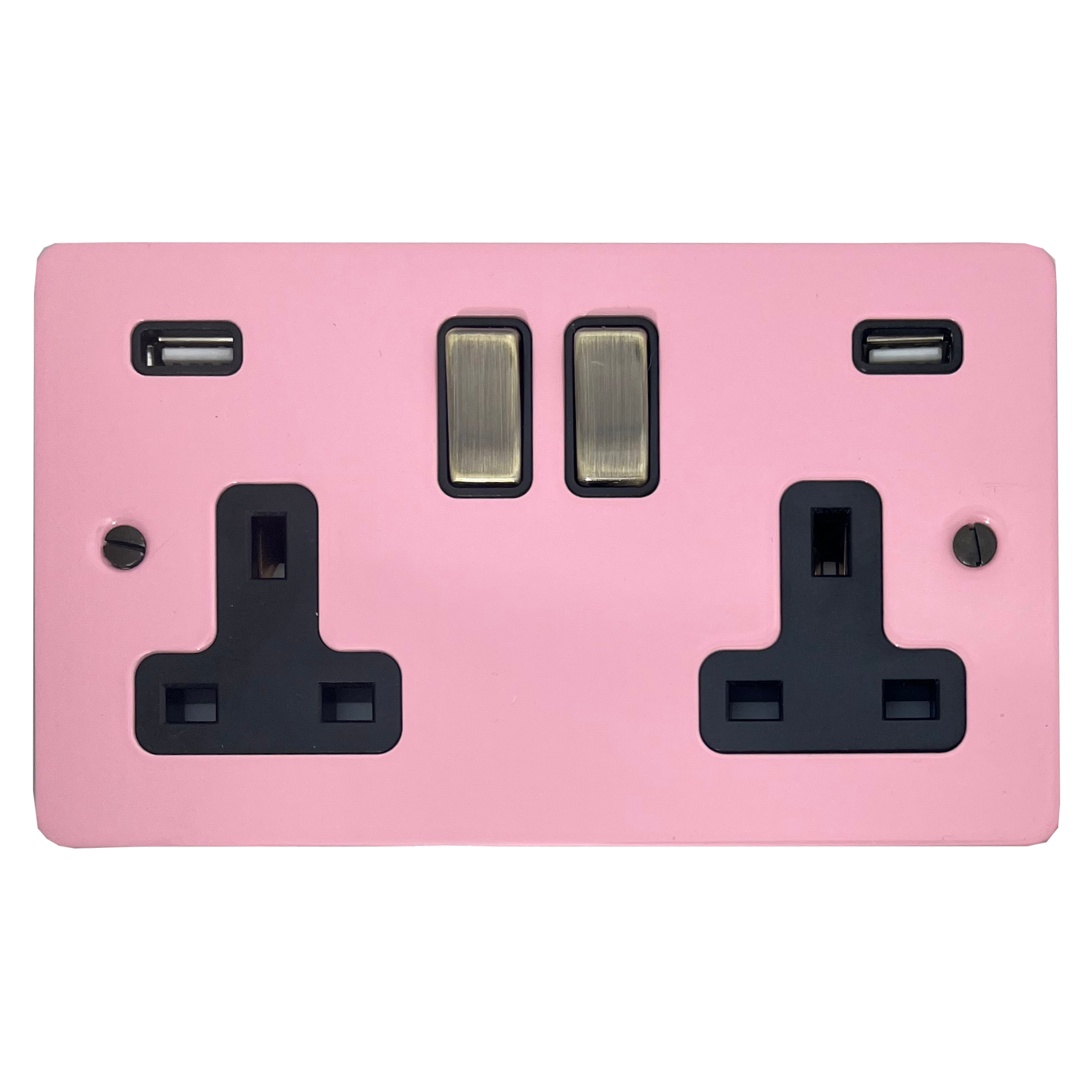 Flat Gloss Pink Double Socket with USB (Black Insert/Antique Brass Switches)
