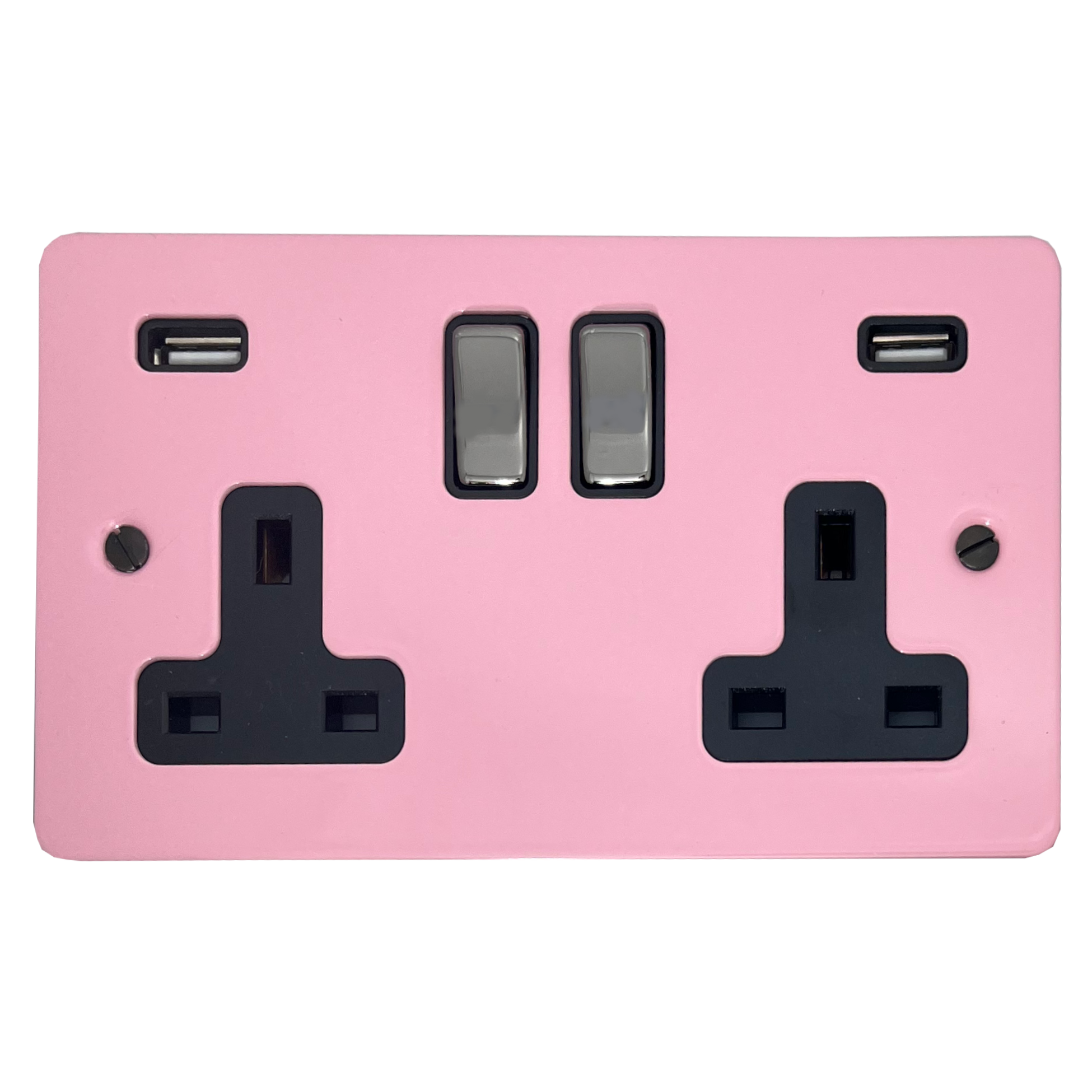 Flat Gloss Pink Double Socket with USB (Black Insert/Black Nickel Switches)