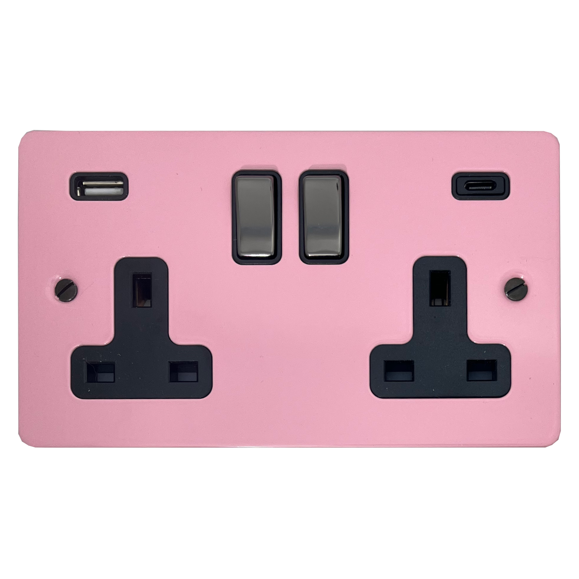 Flat Gloss Pink Double Socket with USB (USB-A and USB-C/Black Nickel Switches)