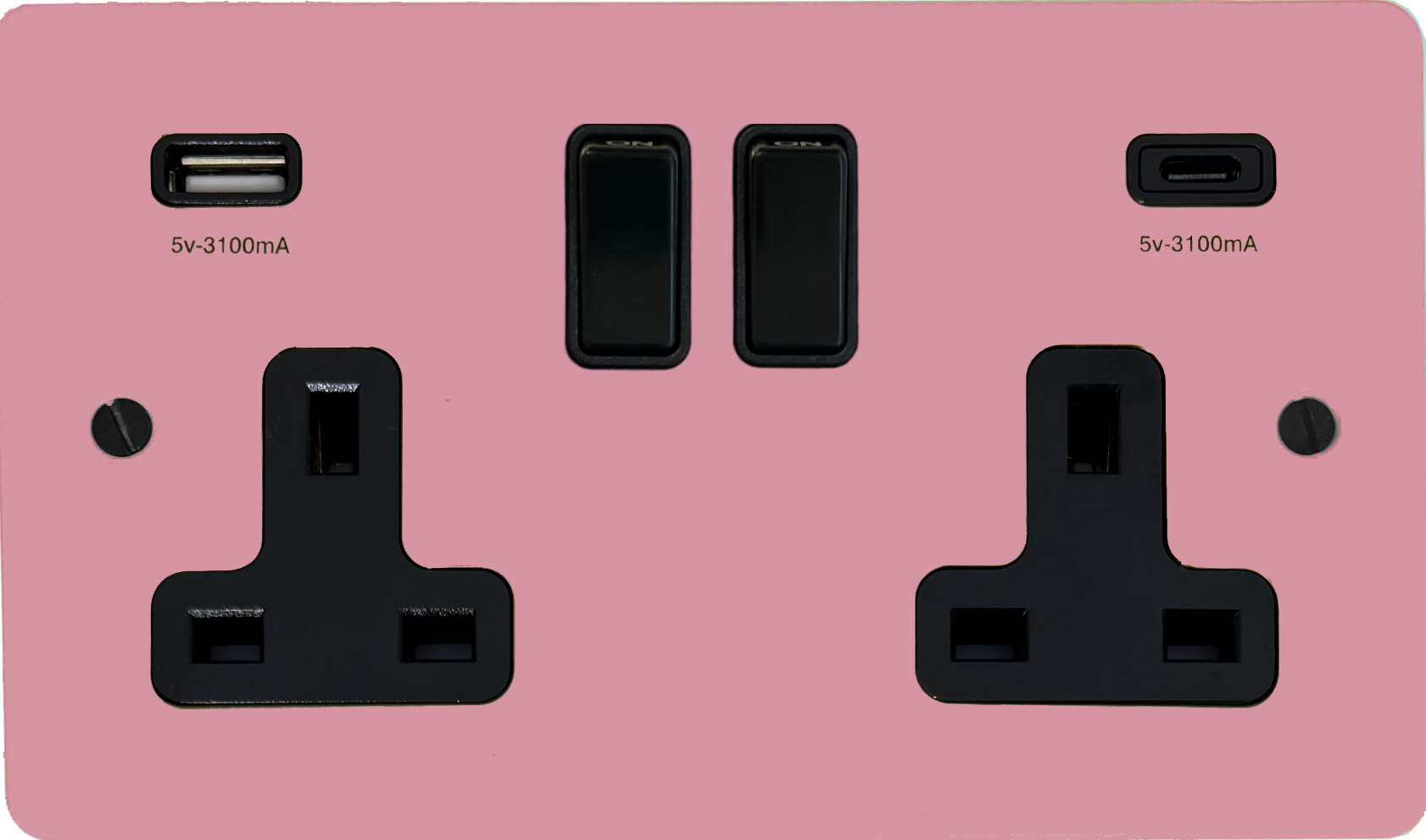 Flat Gloss Pink Double Socket with USB (USB-A and USB-C/Black Switches) - G+H FGP911B