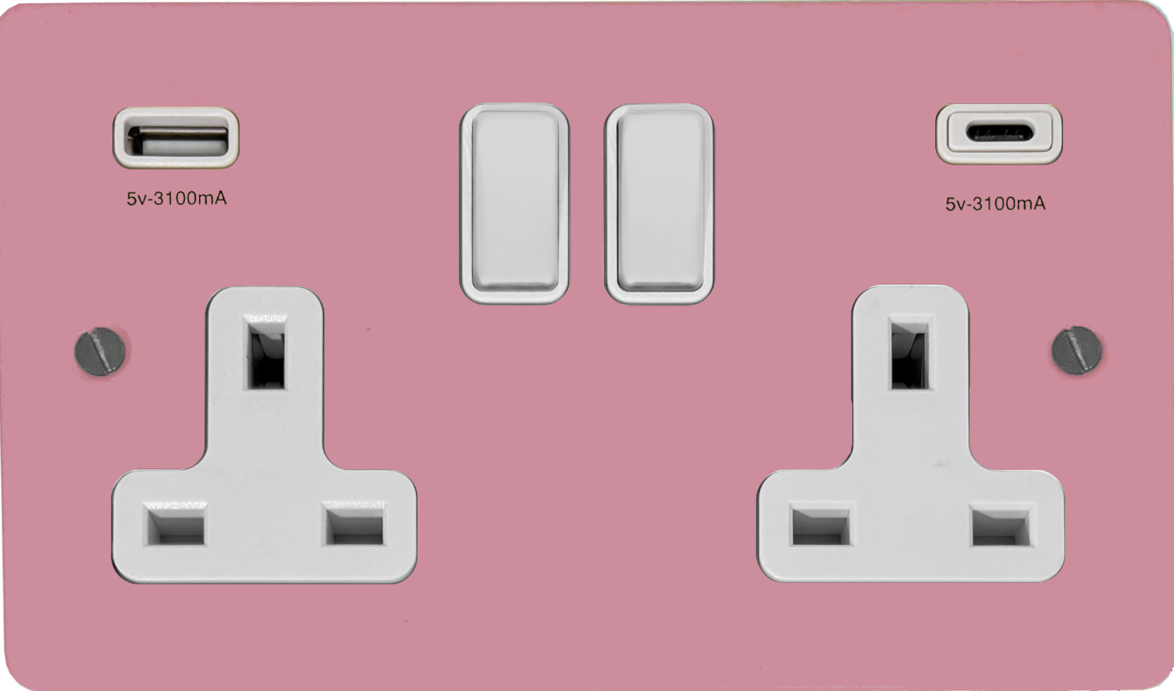 Flat Gloss Pink Double Socket with USB (USB-A and USB-C/White Switches) - G+H FGP911W
