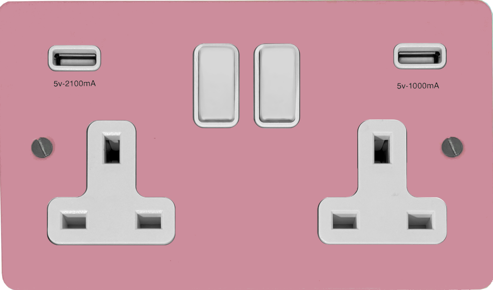 Flat Gloss Pink Double Socket with USB (White Switches) - G+H FGP910W
