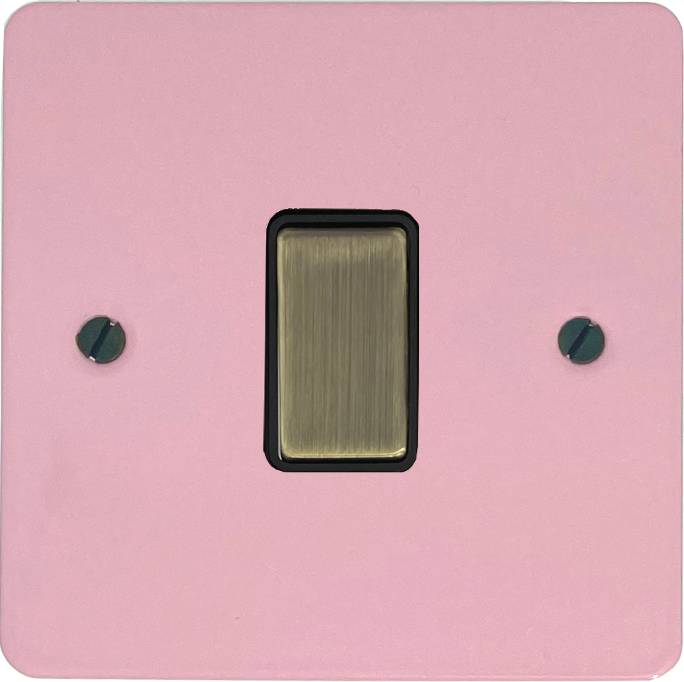 Flat Gloss Pink Light Switch (1 Gang/Black Insert/Antique Brass Switch)