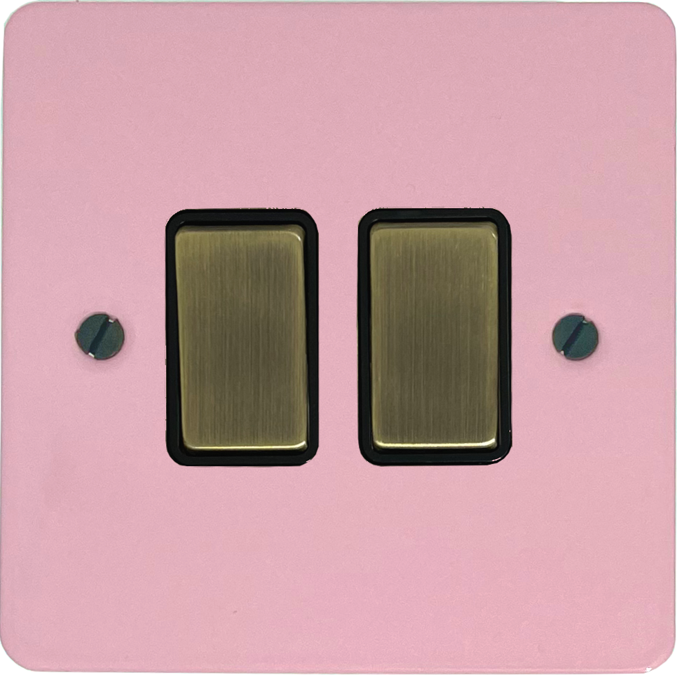 Flat Gloss Pink Light Switch (2 Gang/Black Insert/Antique Brass Switches)