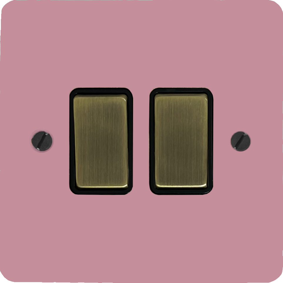 Flat Gloss Pink Light Switch (2 Gang/Black Insert/Antique Brass Switches) - G+H FGP302-AB