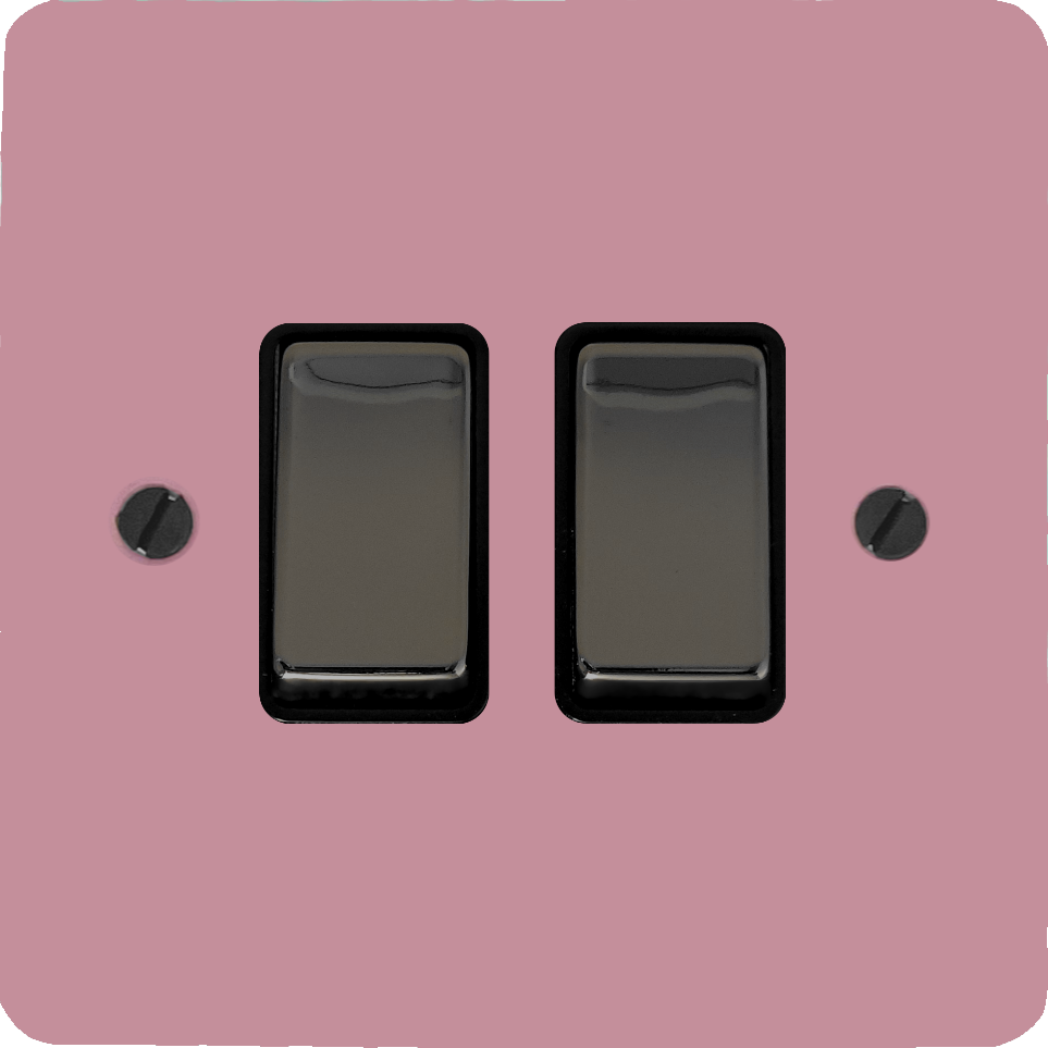 Flat Gloss Pink Light Switch (2 Gang/Black Insert/Black Nickel Switches) - G+H FGP302-BN