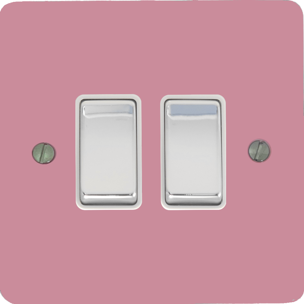 Flat Gloss Pink Light Switch (2 Gang/White Insert/Polished Chrome Switches) - G+H FGP202-PC