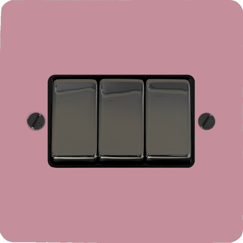 Flat Gloss Pink Light Switch (3 Gang/Black Insert/Black Nickel Switches) - G+H FGP303-BN