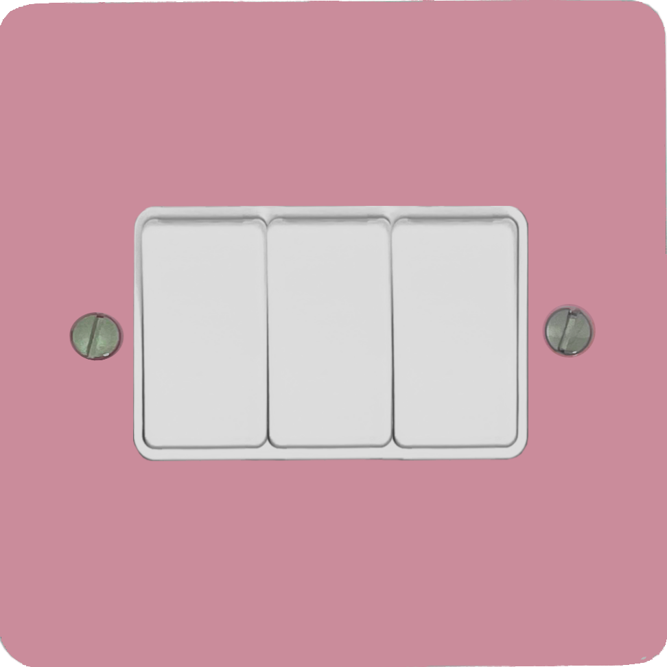 Flat Gloss Pink Light Switch (3 Gang/White Switches) - G+H PIN30SS