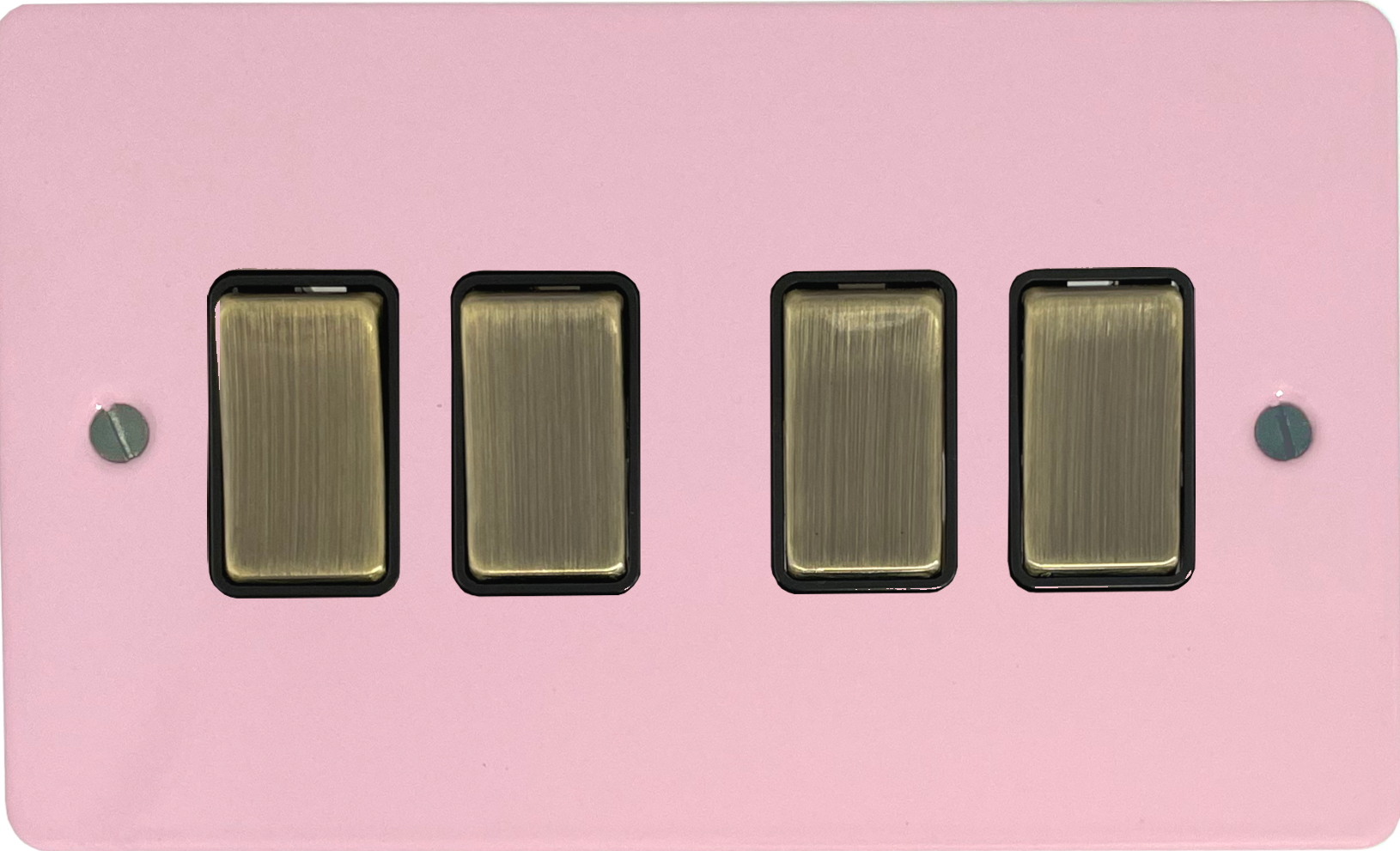 Flat Gloss Pink Light Switch (4 Gang/Black Insert/Antique Brass Switches) - G+H FGP304-AB