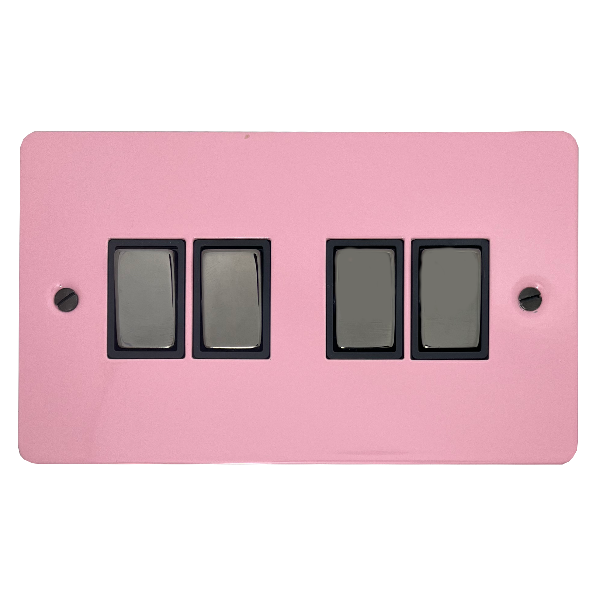 Flat Gloss Pink Light Switch (4 Gang/Black Insert/Black Nickel Switches)