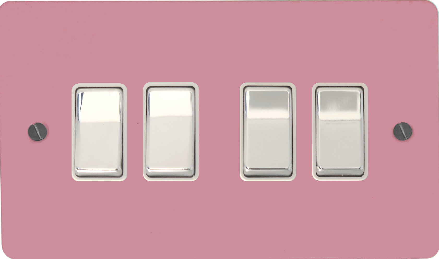Flat Gloss Pink Light Switch (4 Gang/White Insert/Polished Chrome Switches) - G+H FGP204-PC