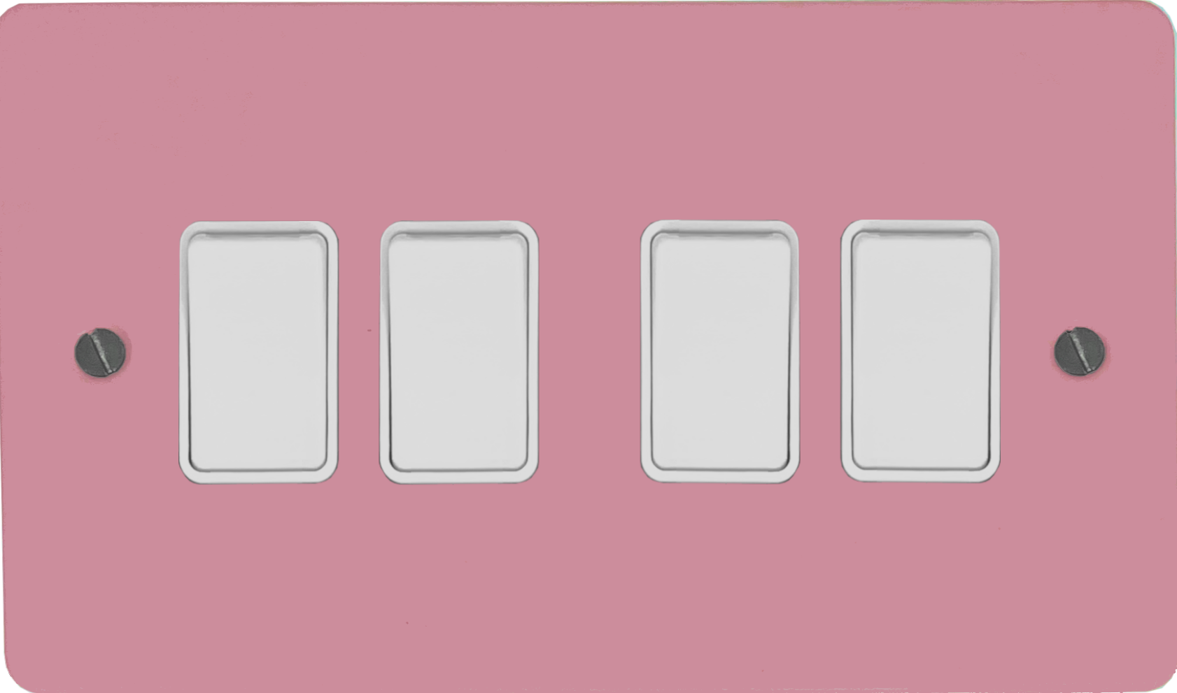 Flat Gloss Pink Light Switch (4 Gang/White Switches) - G+H FGP4W