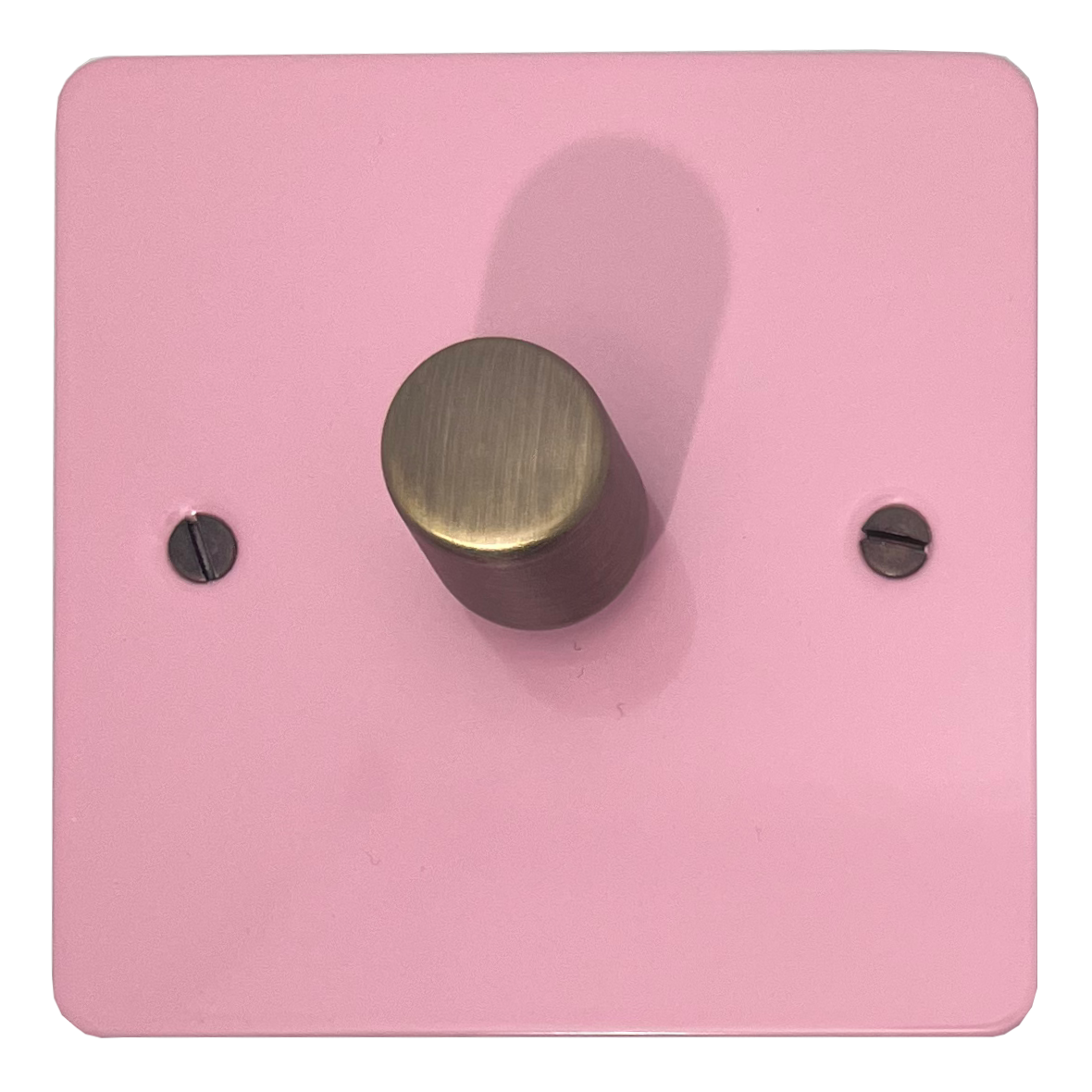 Flat Gloss Pink Push LED Dimmer (1 Gang/Antique Brass Cap) - G+H FGP521-AB