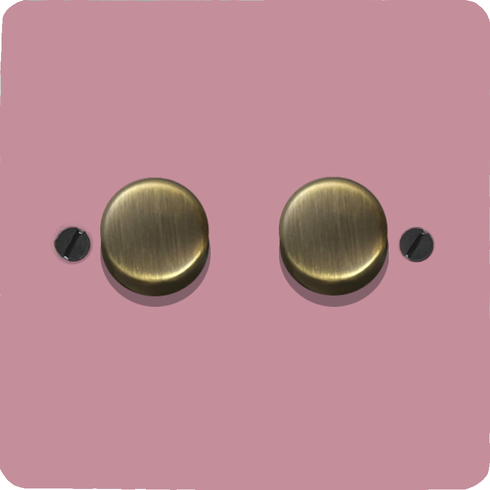 Flat Gloss Pink Push LED Dimmer (2 Gang/Antique Brass Caps) - G+H FGP522-AB