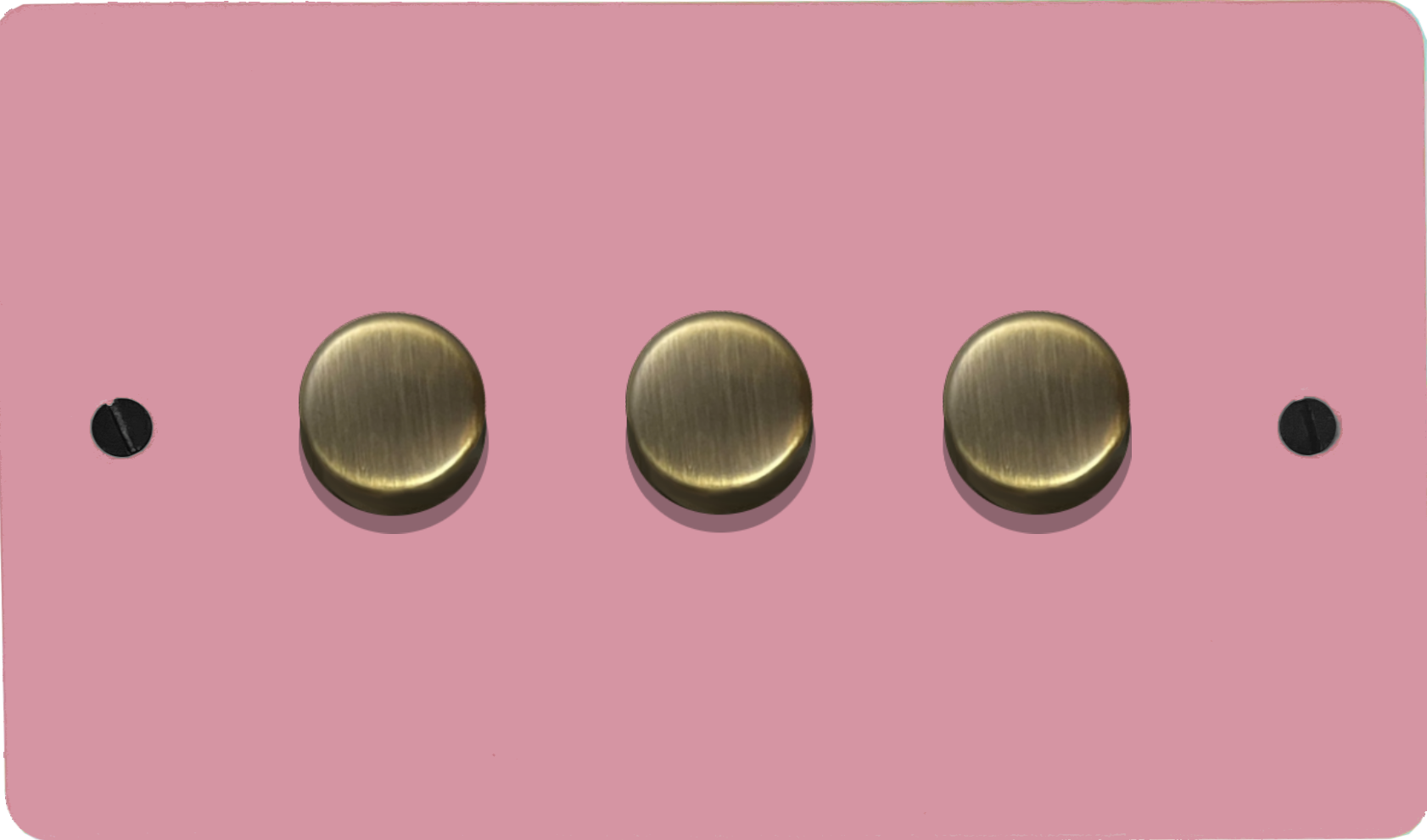 Flat Gloss Pink Push LED Dimmer (3 Gang/Antique Brass Caps) - G+H FGP523-AB