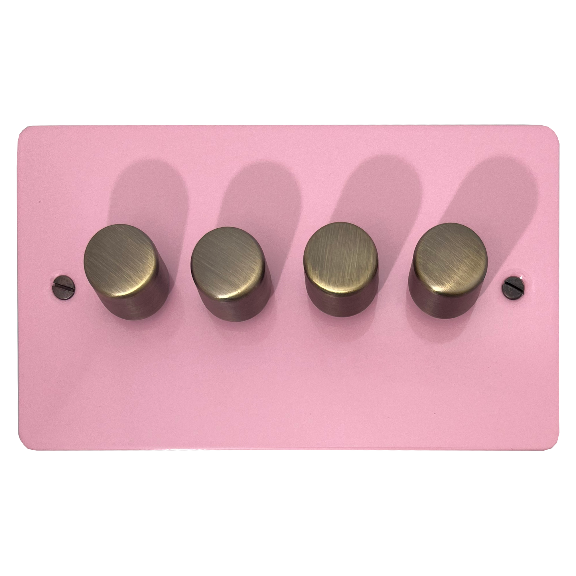 Flat Gloss Pink Push LED Dimmer (4 Gang/Antique Brass Cap) - G+H FGP524-AB