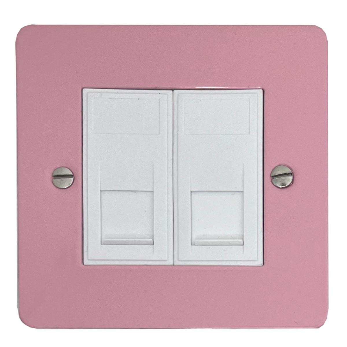 Flat Gloss Pink RJ45 Socket (2 Gang/White Insert)