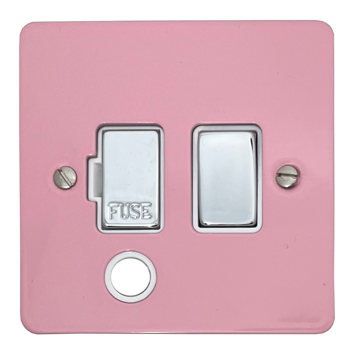 Flat Gloss Pink Switched Fused Spur with Flex Outlet (White Insert/Polished Chrome Switch) - G+H FGP256-PC