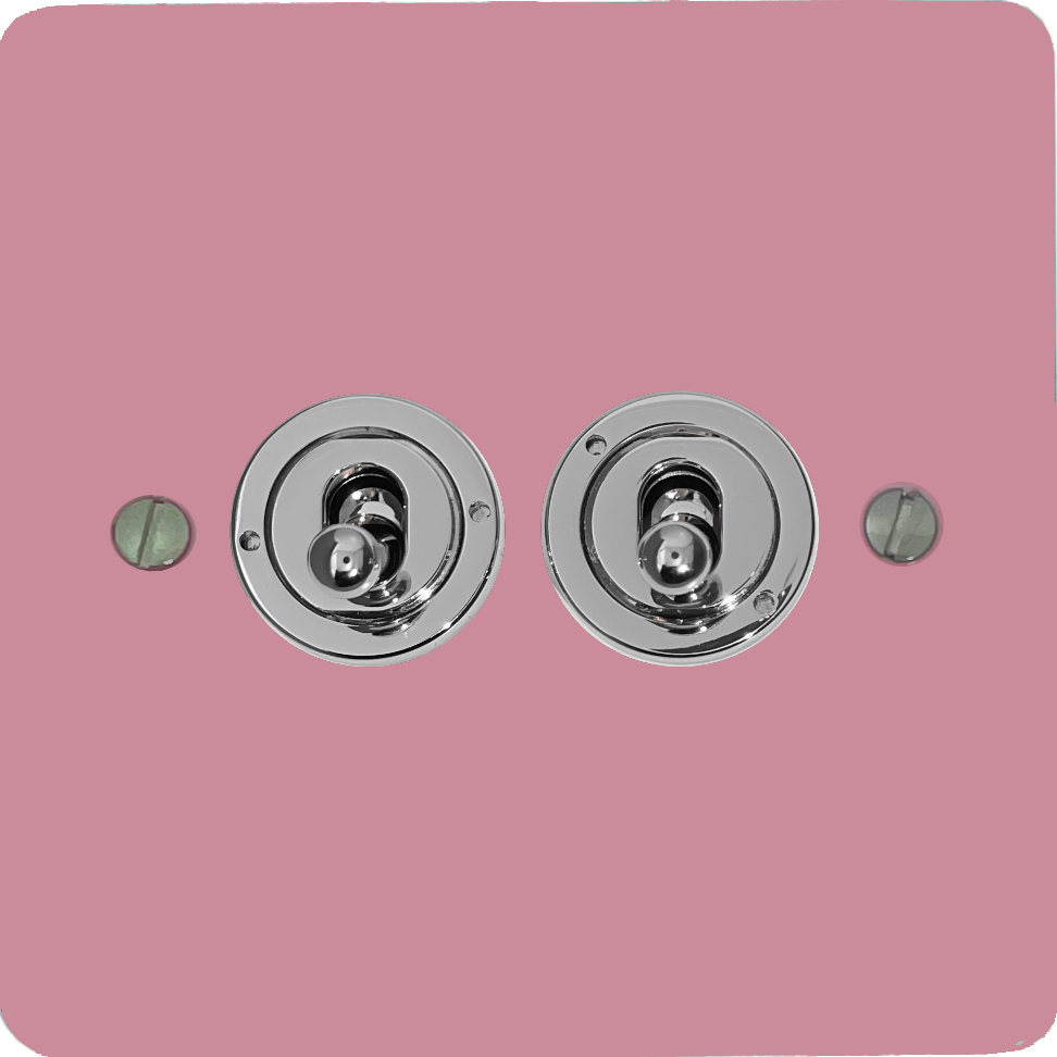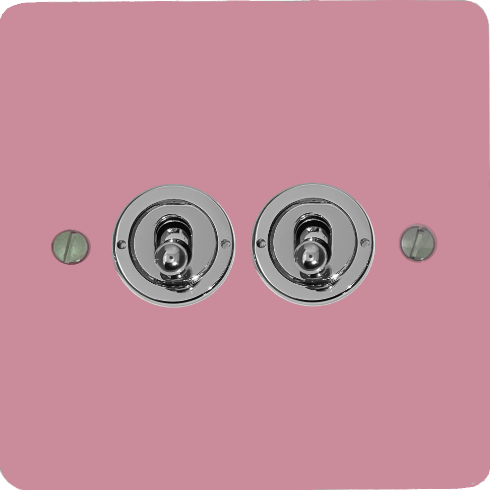 Flat Gloss Pink Toggle Switch (2 Gang/Polished Brass Toggle) - G+H FGP382-PC