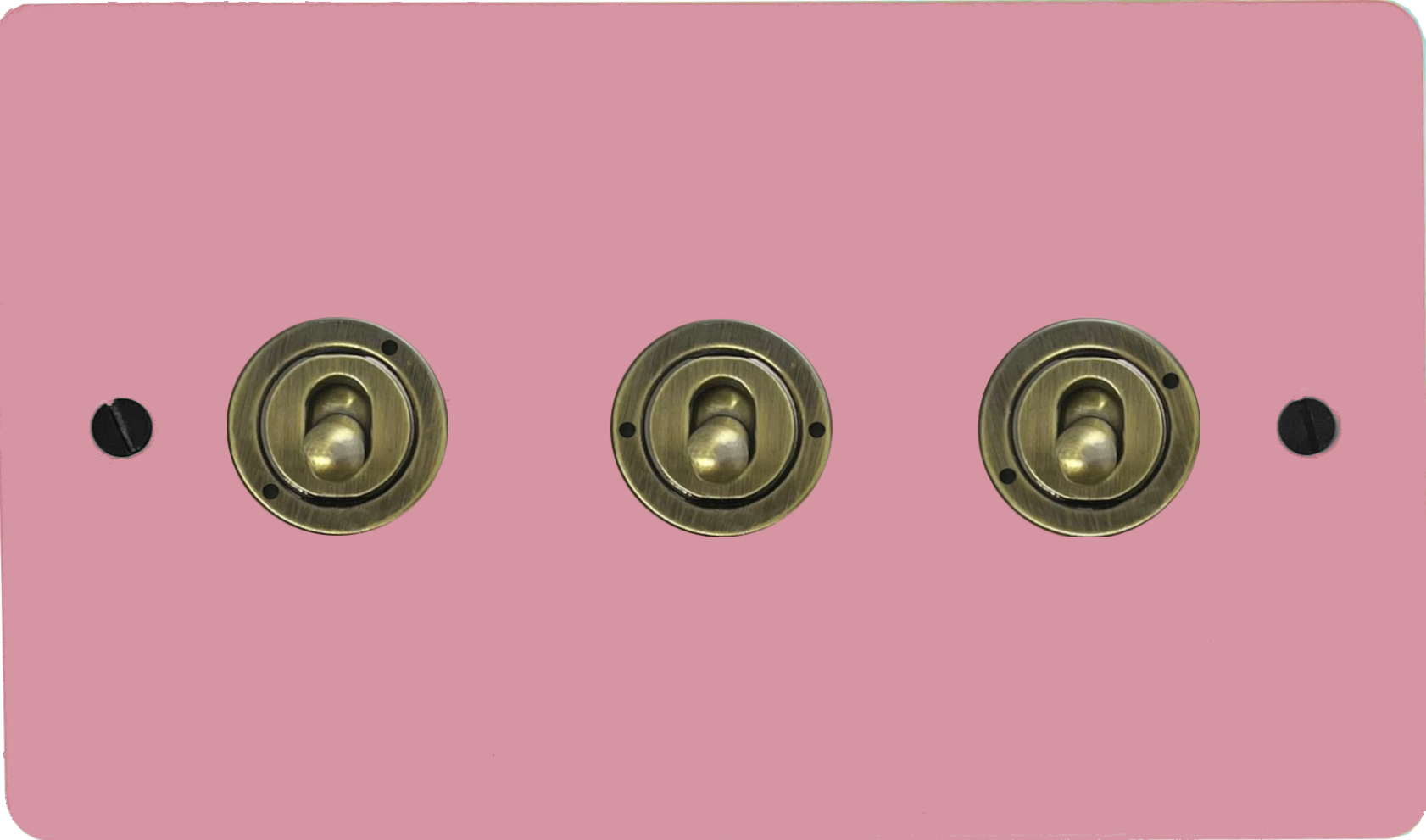 Flat Gloss Pink Toggle Switch (3 Gang/Antique Brass Switches)