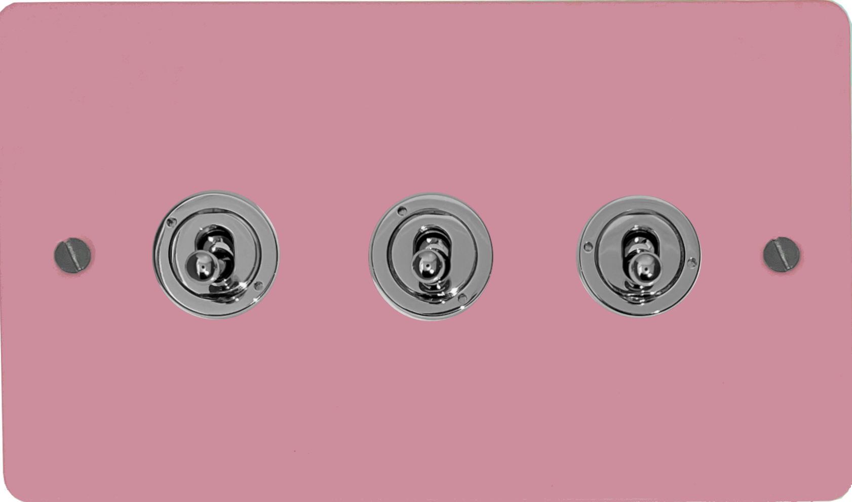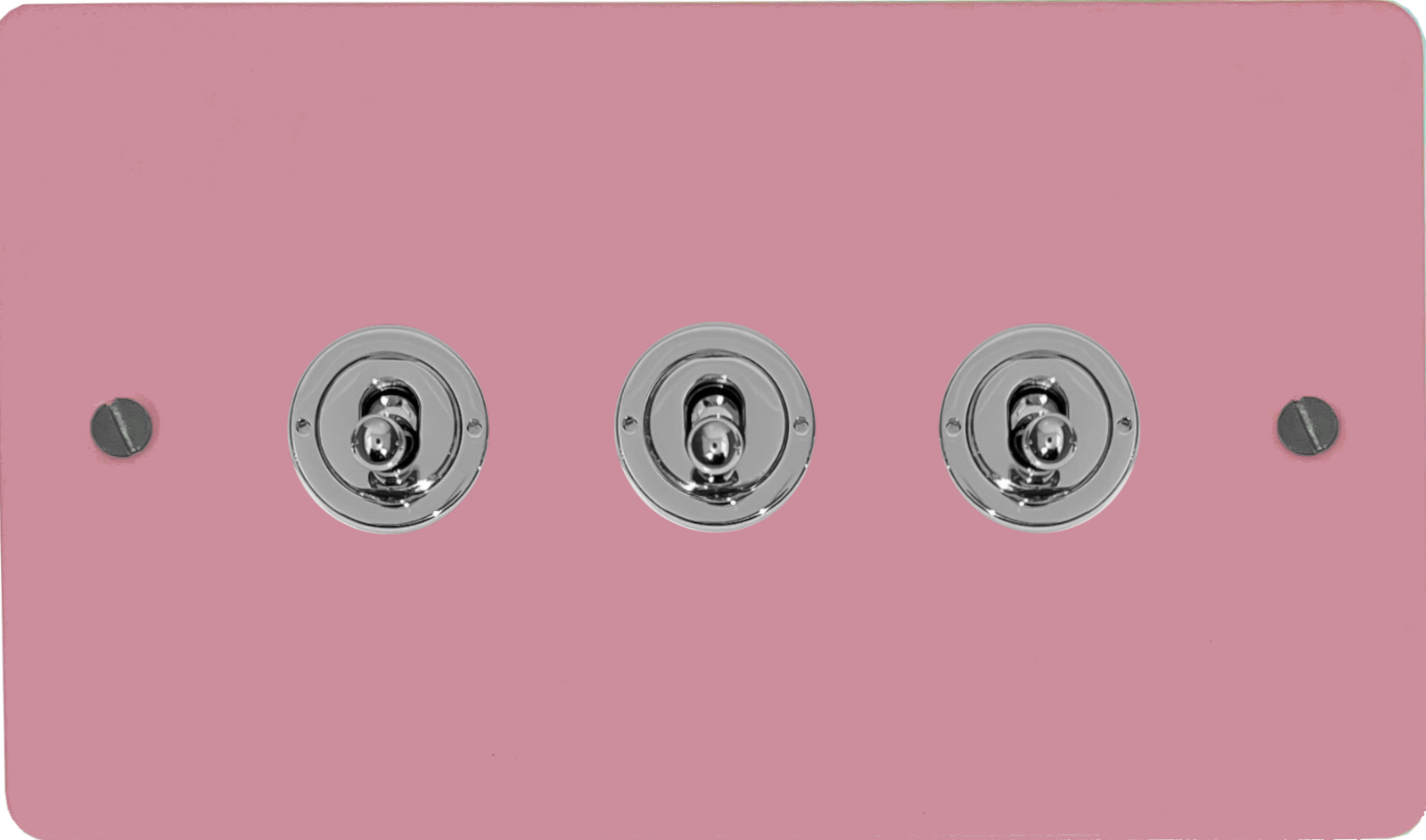 Flat Gloss Pink Toggle Switch (3 Gang/Polished Brass Toggle) - G+H FGP383-PC