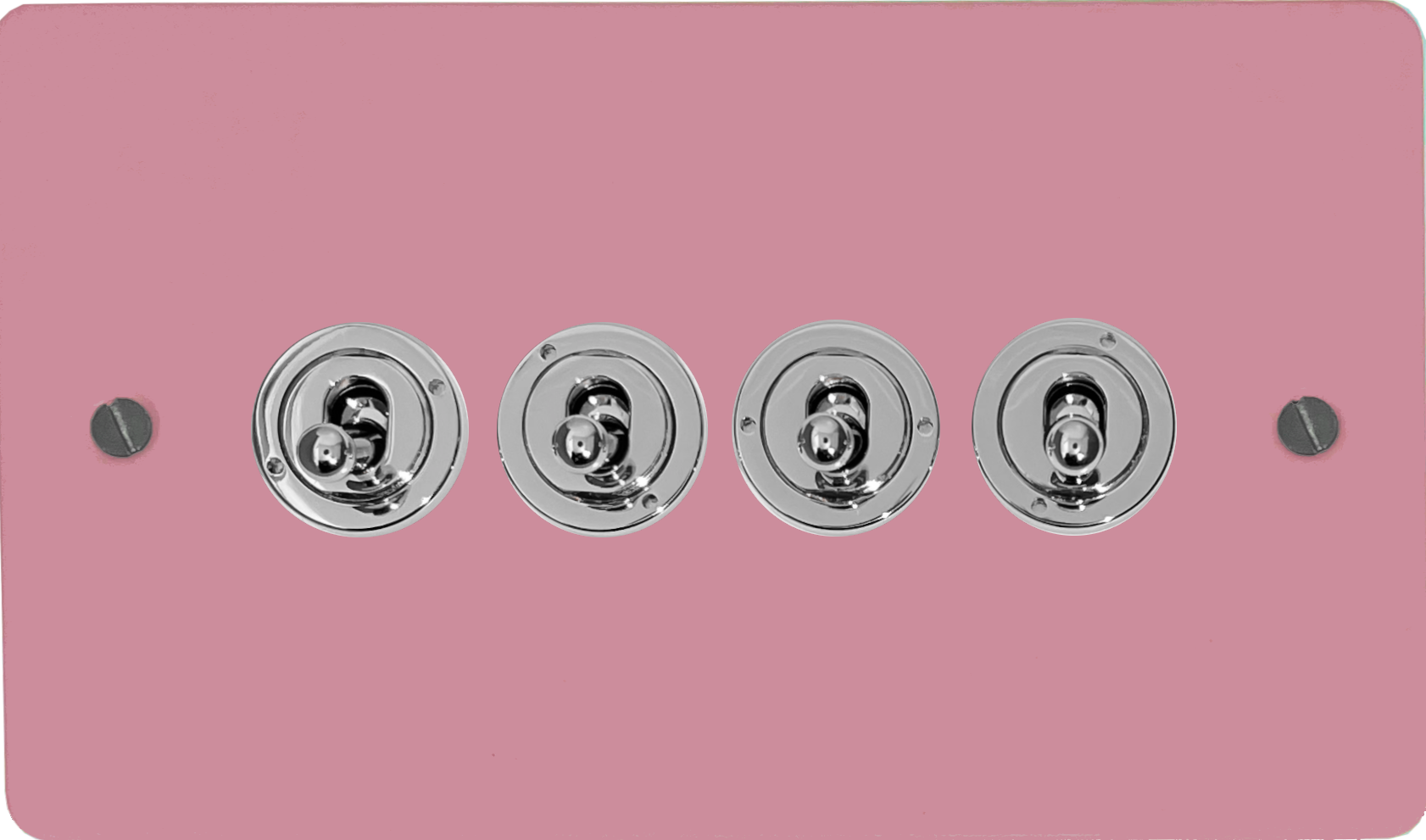 Flat Gloss Pink Toggle Switch (4 Gang/Polished Brass Toggle) - G+H FGP384-PC