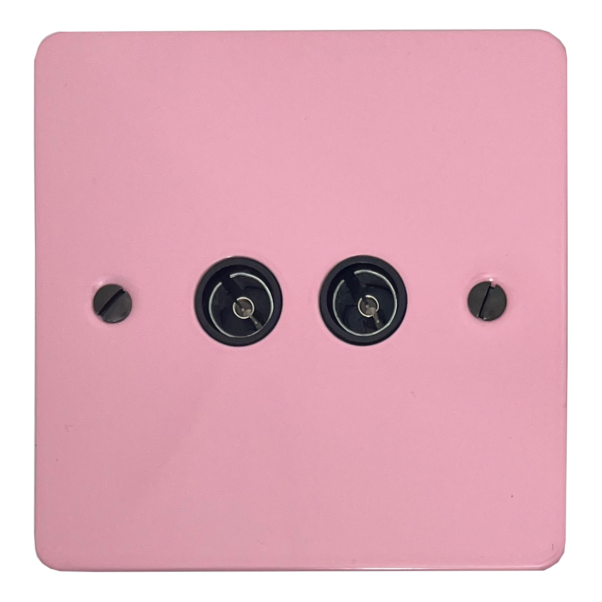 Flat Gloss Pink TV Socket (2 Gang/Black Insert)