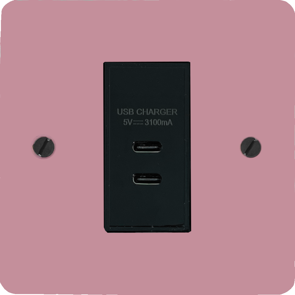 Flat Gloss Pink USB Charger (2x USB-C) (1 Gang/Black Insert) - G+H FGP42B