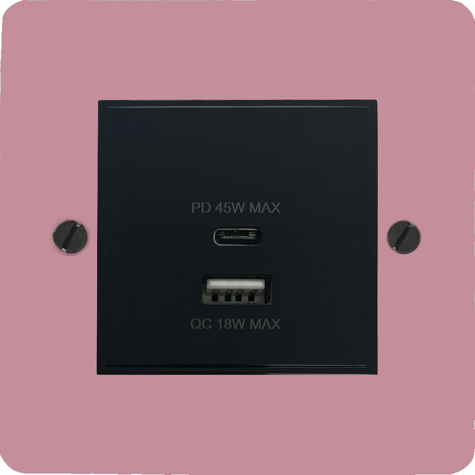 Flat Gloss Pink USB Charger (Dual USB A + C Quick Charge) (1 Gang/Black Insert) - G+H FGP43B