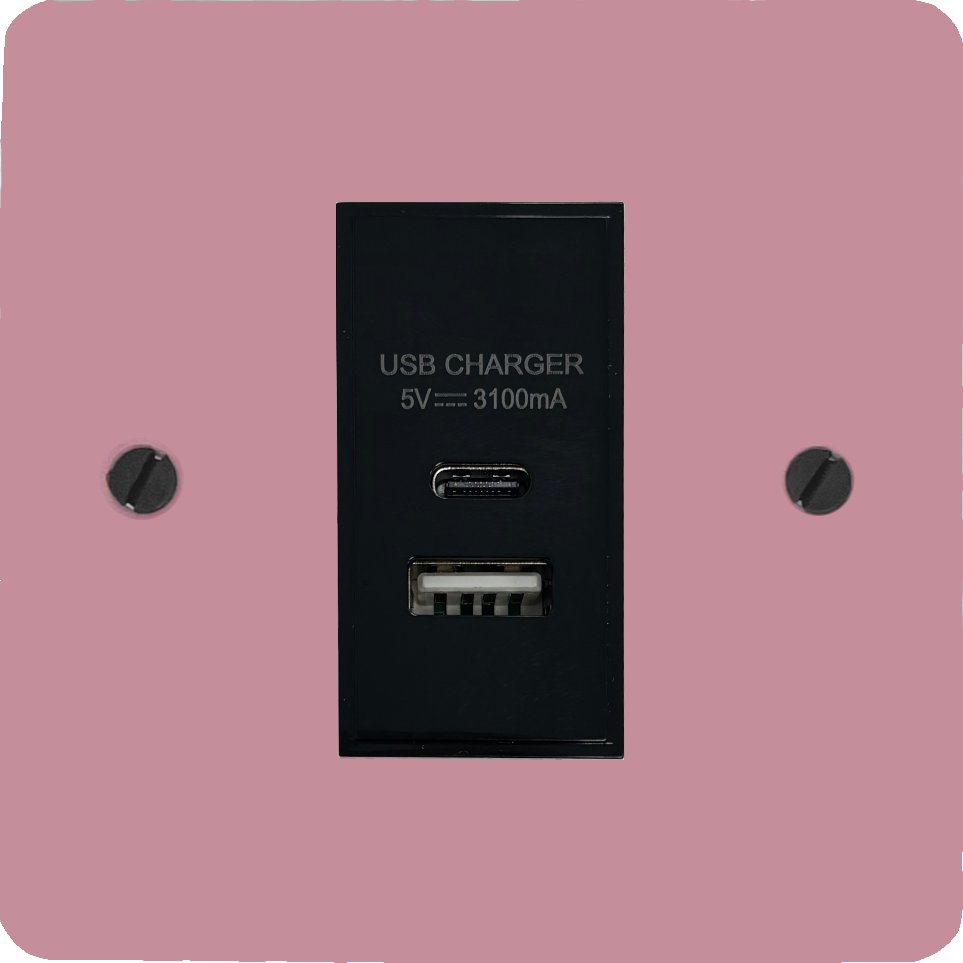 Flat Gloss Pink USB Charger (USB-A and USB-C) (1 Gang/Black Insert) - G+H FGP41B