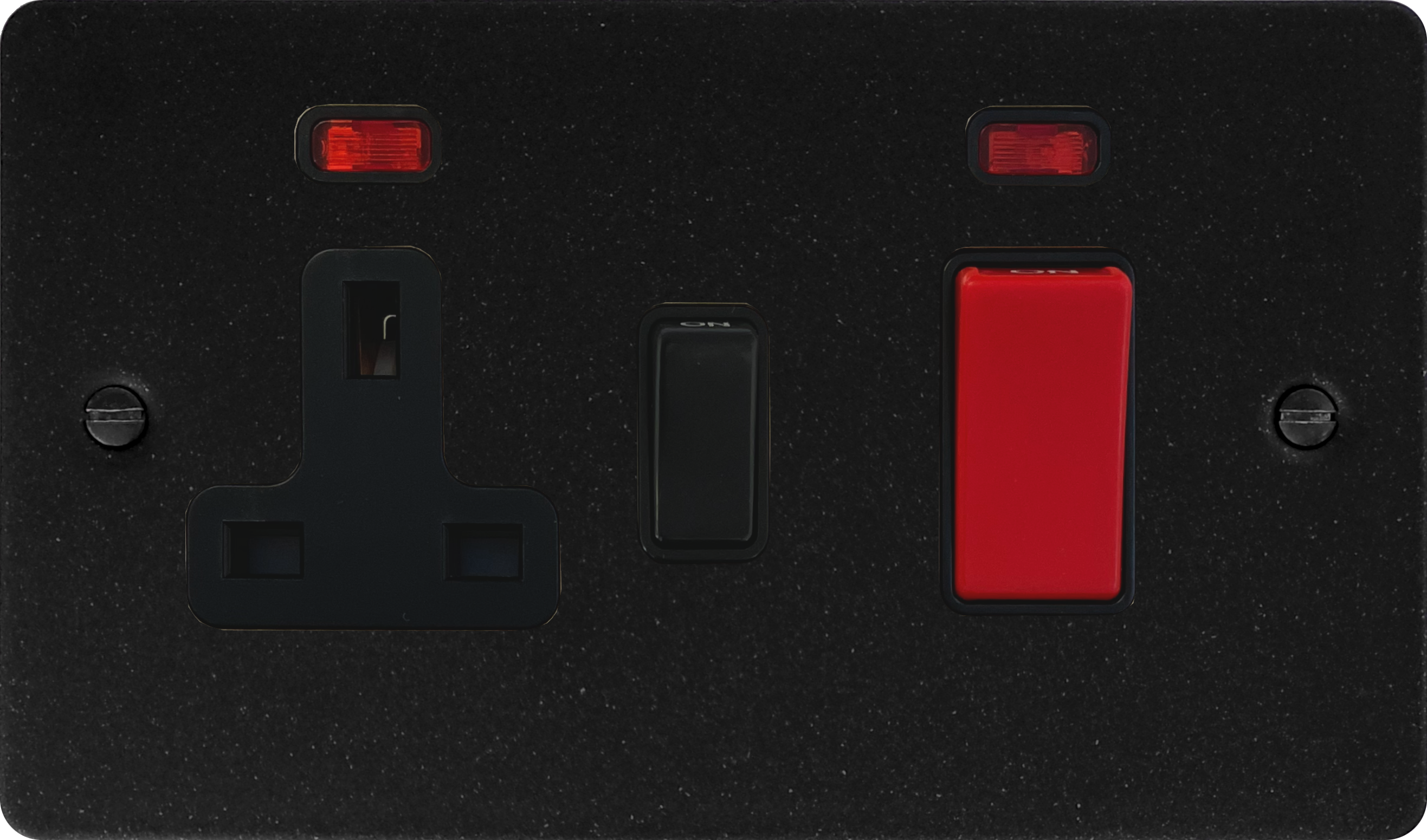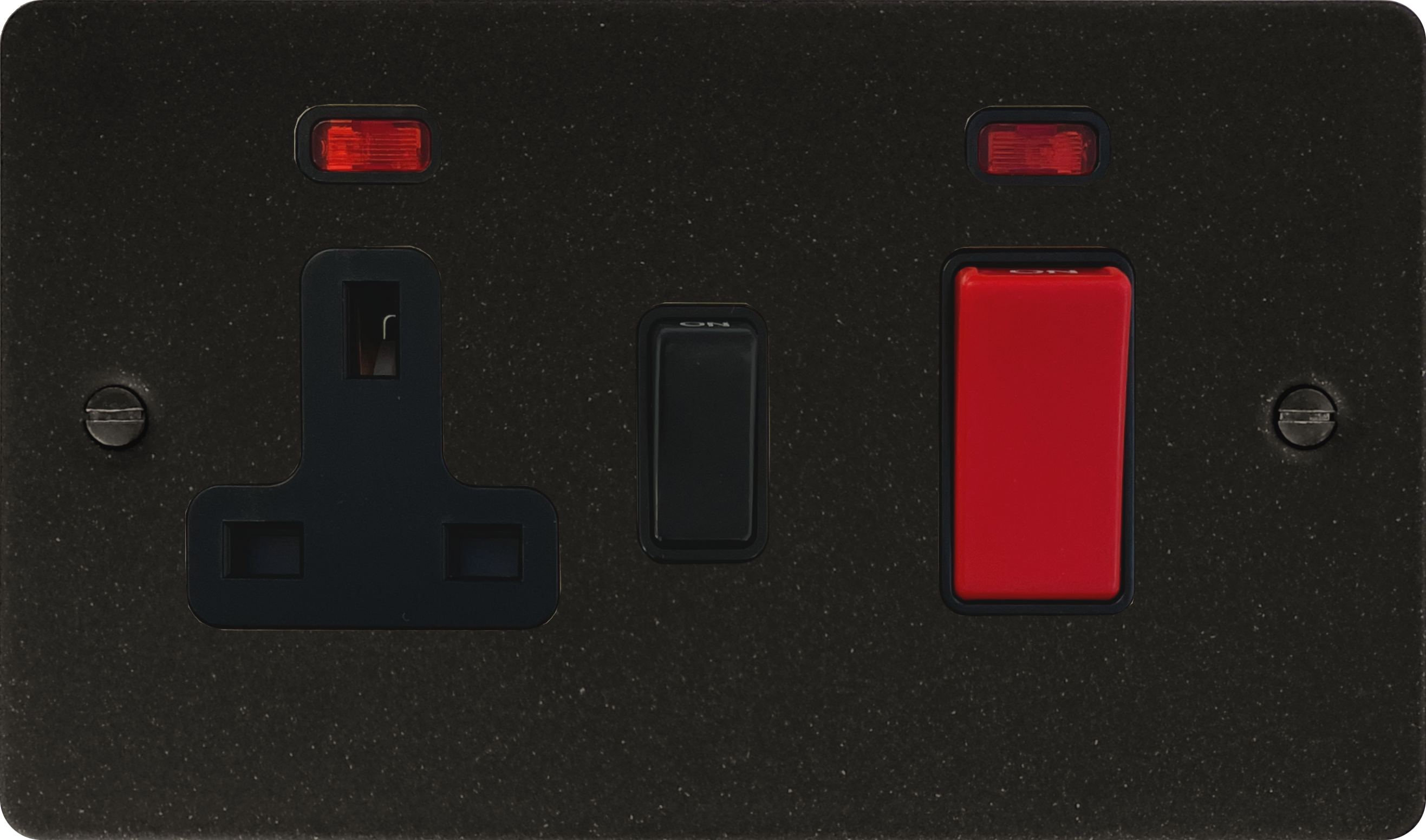 Flat Graphite Cooker Switch with Socket (Black Switch) - G+H FG29B
