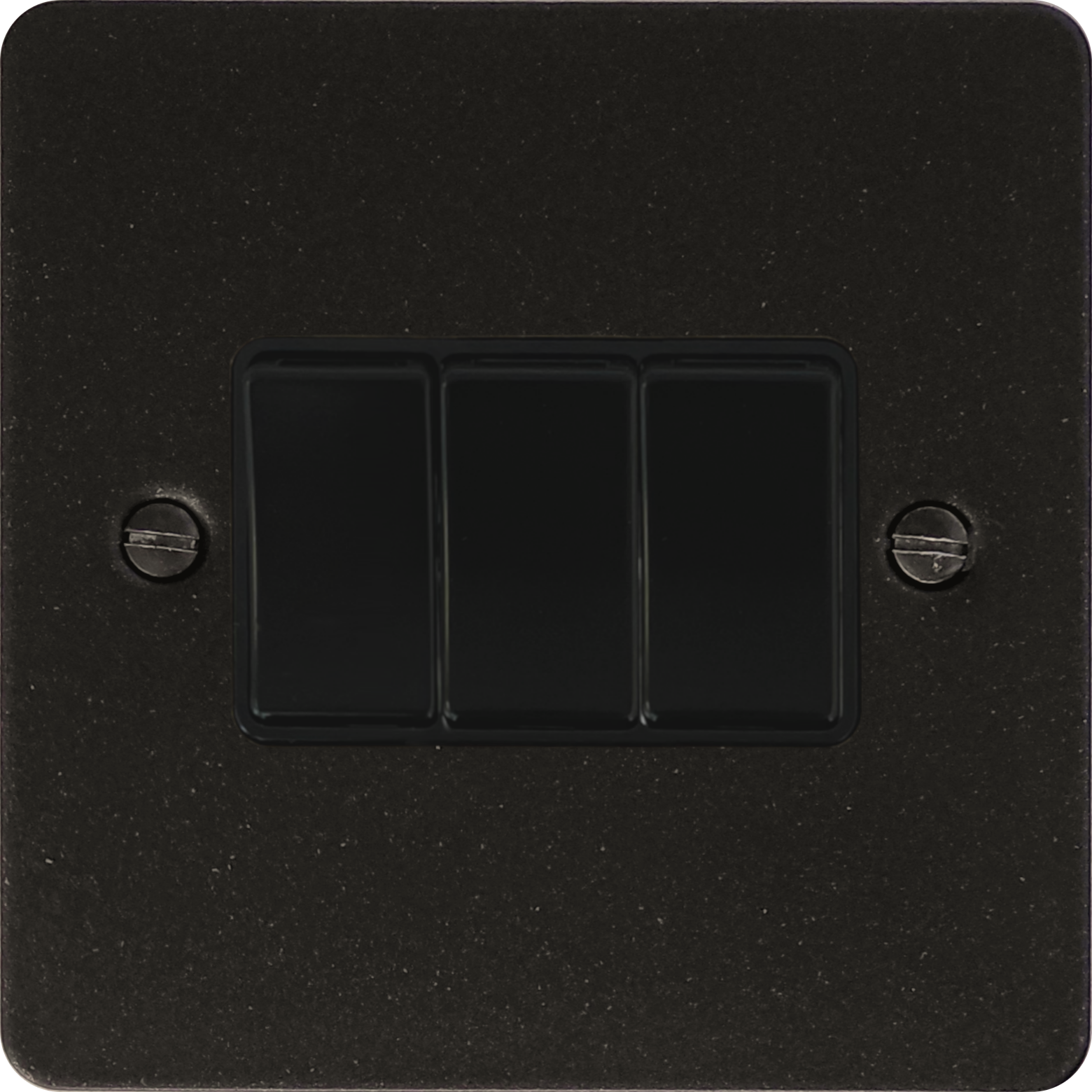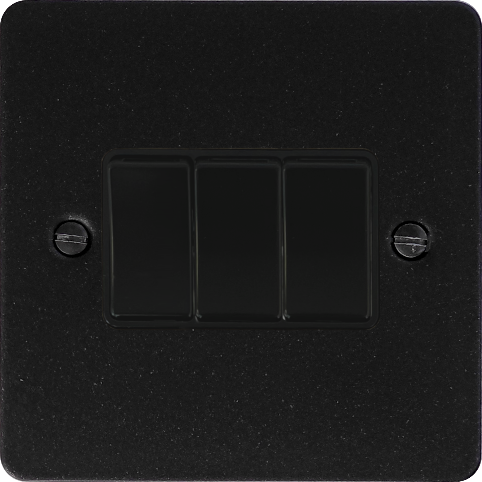 Flat Graphite Light Switch (3 Gang/Black Switches) - G+H FG3B