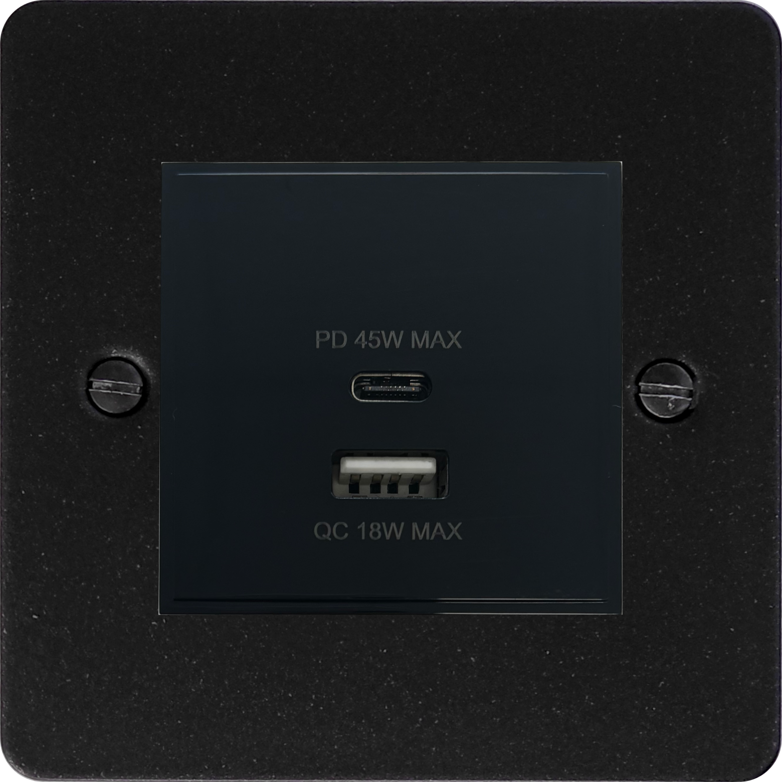 Flat Graphite USB Charger (Dual USB A + C Quick Charge) (1 Gang) - G+H FG43B