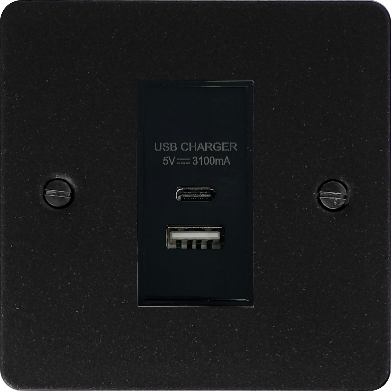 Flat Graphite USB Charger (USB-A and USB-C) (1 Gang) - G+H FG41B