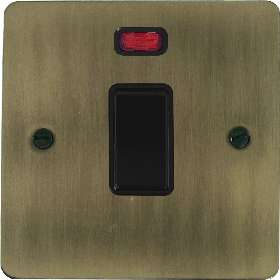 Flat Light Antique Brass 20 Amp DP Switch with Neon (Black Switch) - G+H FLAB26B